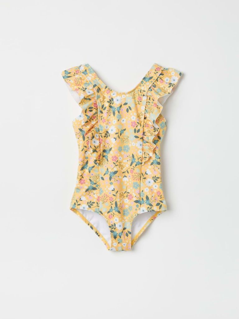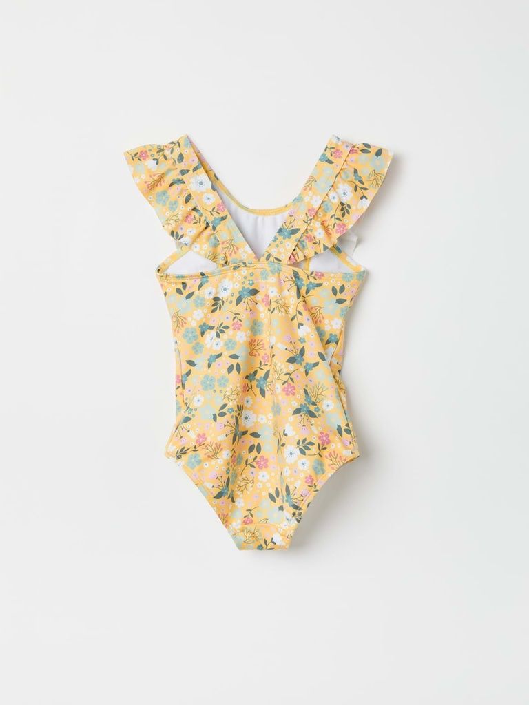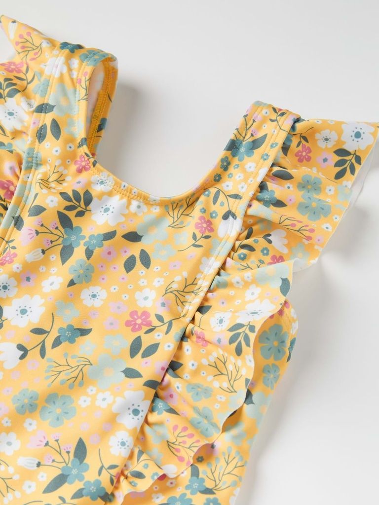 Dieser bequeme Badeanzug aus 100 % recyceltem Polyester ist ideal für Wasserspaß und umweltbewusstes Vergnügen. Der Badeanzug besticht durch sein durchgehendes Blumenmuster, das ihm eine fröhliche und attraktive Ausstrahlung verleiht. Zusätzlich sind über den Schultern bezaubernde Rüschen angebracht, die einen verspielten und stilvollen Akzent setzen. Die Vorderseite des Badeanzugs ist gefüttert, was zusätzlichen Komfort und bessere Abdeckung bietet. Dieser Badeanzug kombiniert Nachhaltigkeit mit modischem Design und bietet jungen Schwimmerinnen alles, was sie für einen stilvollen und bequemen Tag am oder im Wasser benötigen.