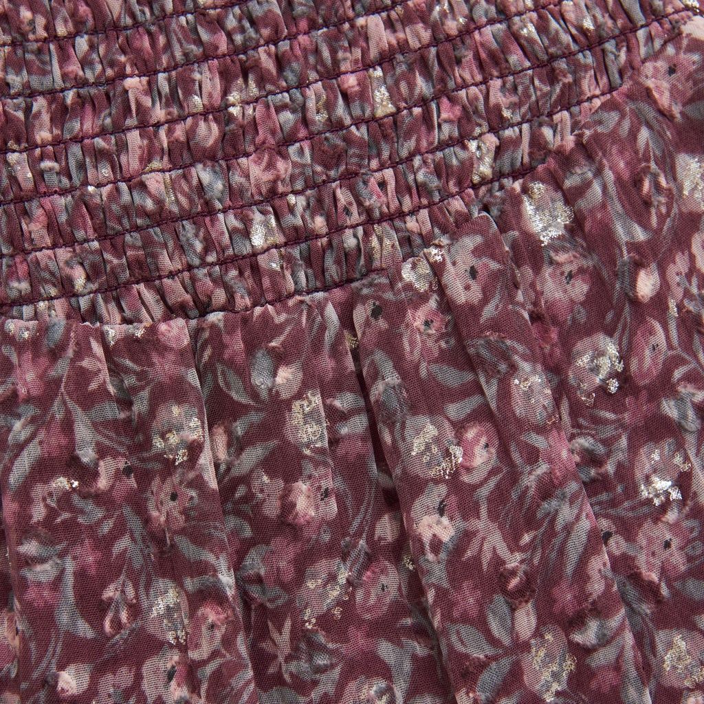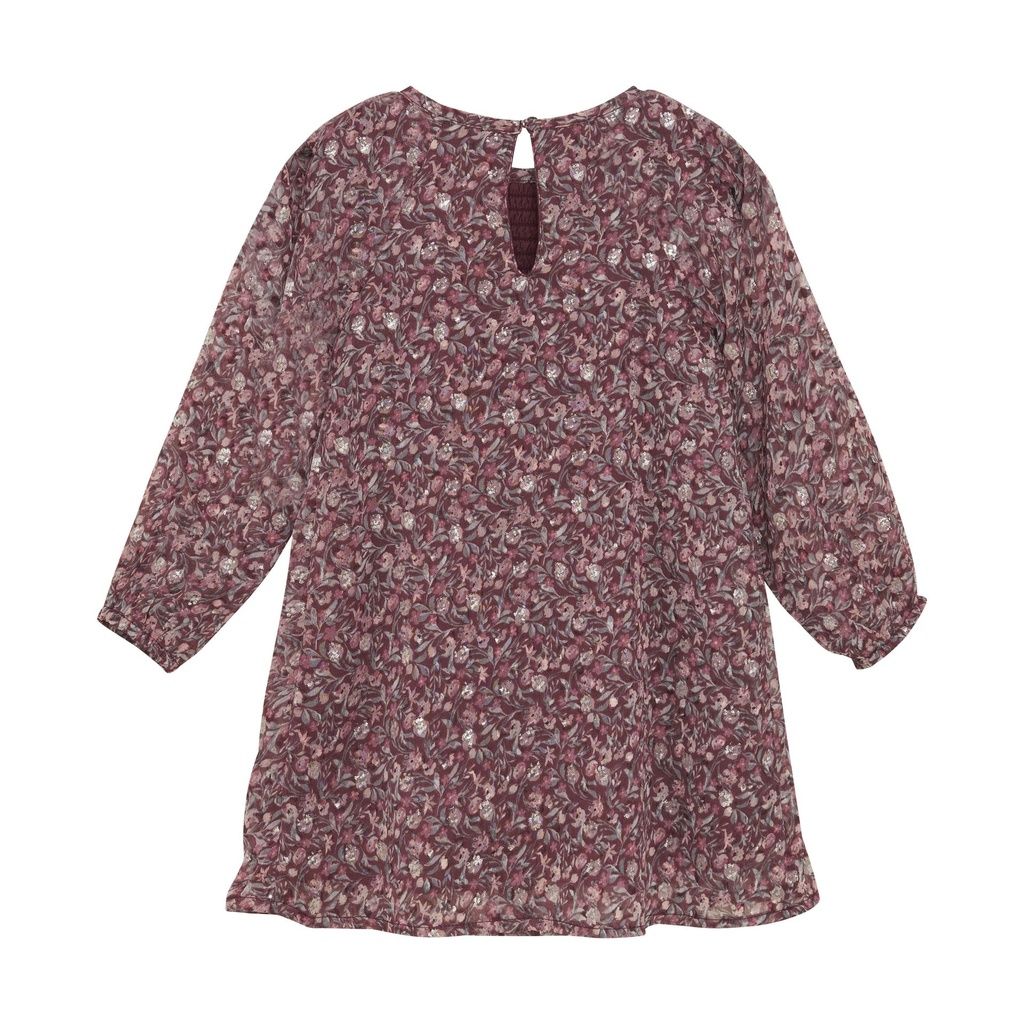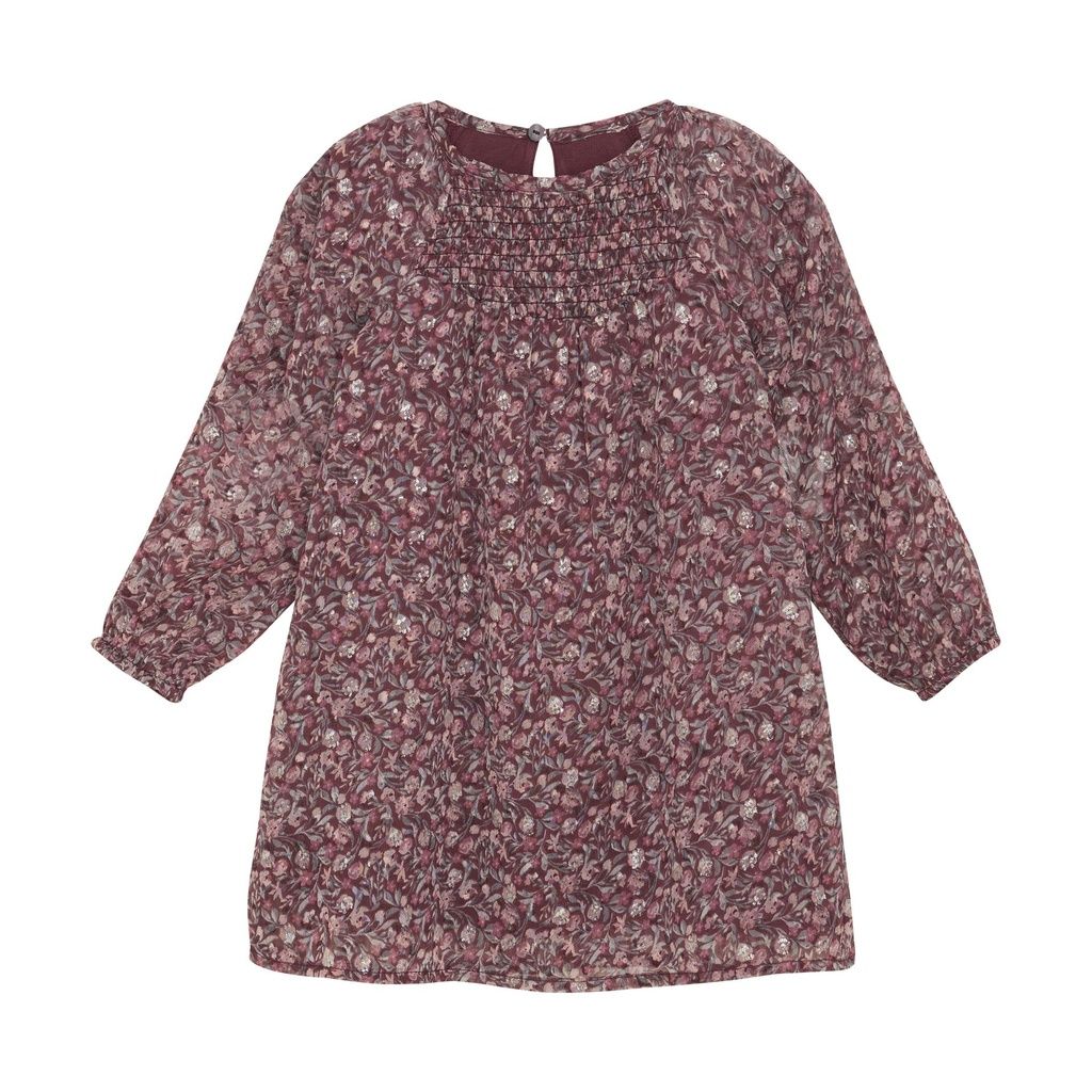Dieses hübsche Kleid von Creamie kommt in einem staubigen Rosaton mit zartem Allover-Blumendruck. Über der Brust sorgt ein Kittel mit feinen Falten für eine schöne Silhouette, während die halbtransparenten Ärmel dem Look eine verspielte Leichtigkeit verleihen. Das Kleid ist zweilagig gearbeitet: Die innere Baumwollschicht ist dicht gewebt und macht es blickdicht und angenehm zu tragen. Auf der Rückseite wird es mit einem Knopf und tropfenförmigem Ausschnitt geschlossen.