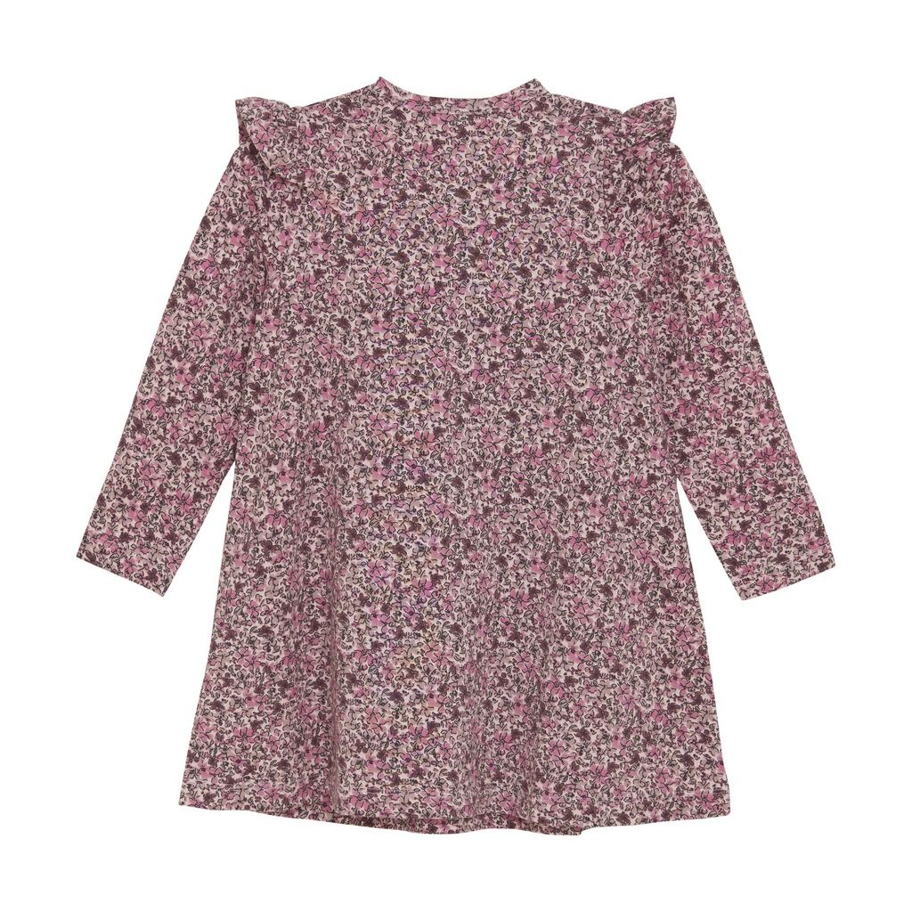 Dieses langärmelige Kleid von Creamie bezaubert mit einem floralen Allover-Print und verspielten Rüschen über den Schultern. Eine Naht über der Brust sorgt für einen schönen Fall, von dem der Rock in feinen Falten nach unten schwingt. Das Kleid ist aus einem weichen Baumwoll-Modal-Mix gefertigt, der sich besonders angenehm auf der Haut trägt. In den Grössen 80–98 erleichtern verdeckte Druckknöpfe an der linken Schulter das An- und Ausziehen.
