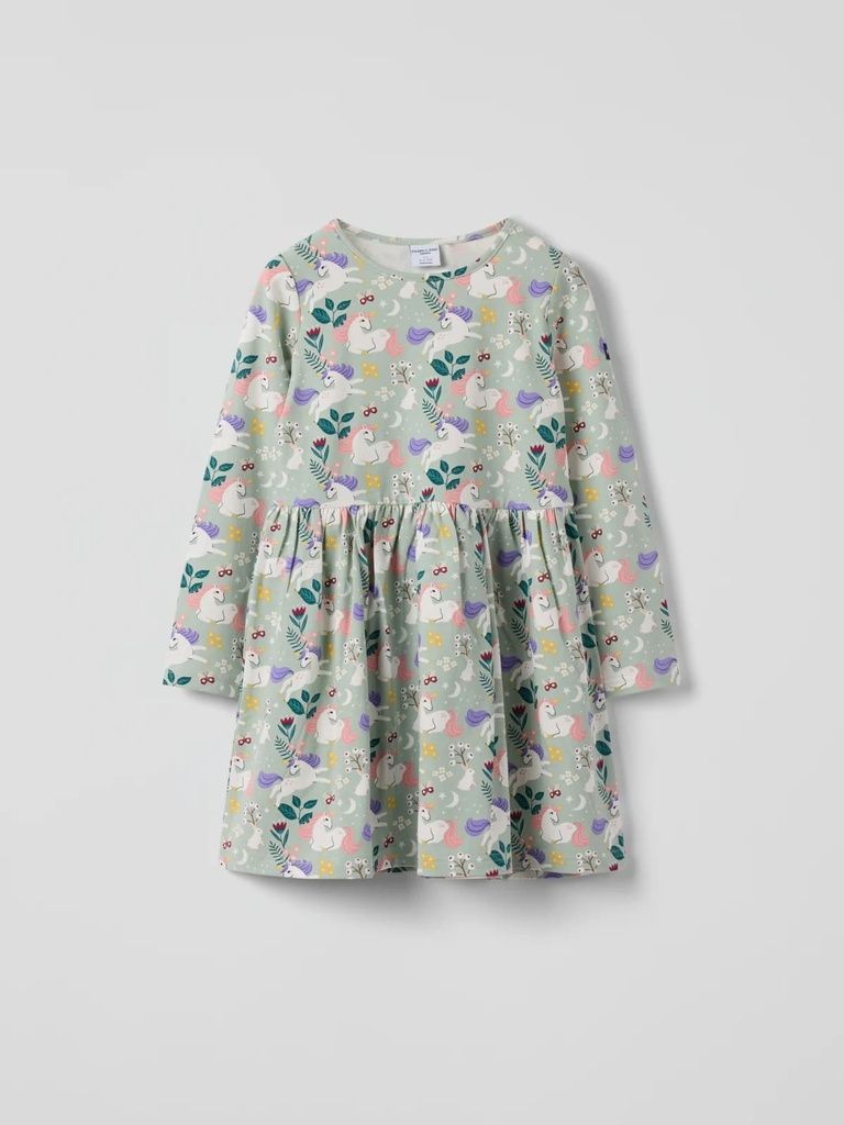 Dieses hübsche Kinderkleid mit weitem Rock ist ein echtes Lieblingsstück für jeden Tag - ob in der Kita oder bei kleinen Festen. Gefertigt aus weicher Bio-Baumwolle, ist es angenehm zu tragen und schont zugleich die Haut. Der gerippte Halsausschnitt sorgt für eine schöne Passform, während die Knopfleiste am Rücken das An- und Ausziehen erleichtert.