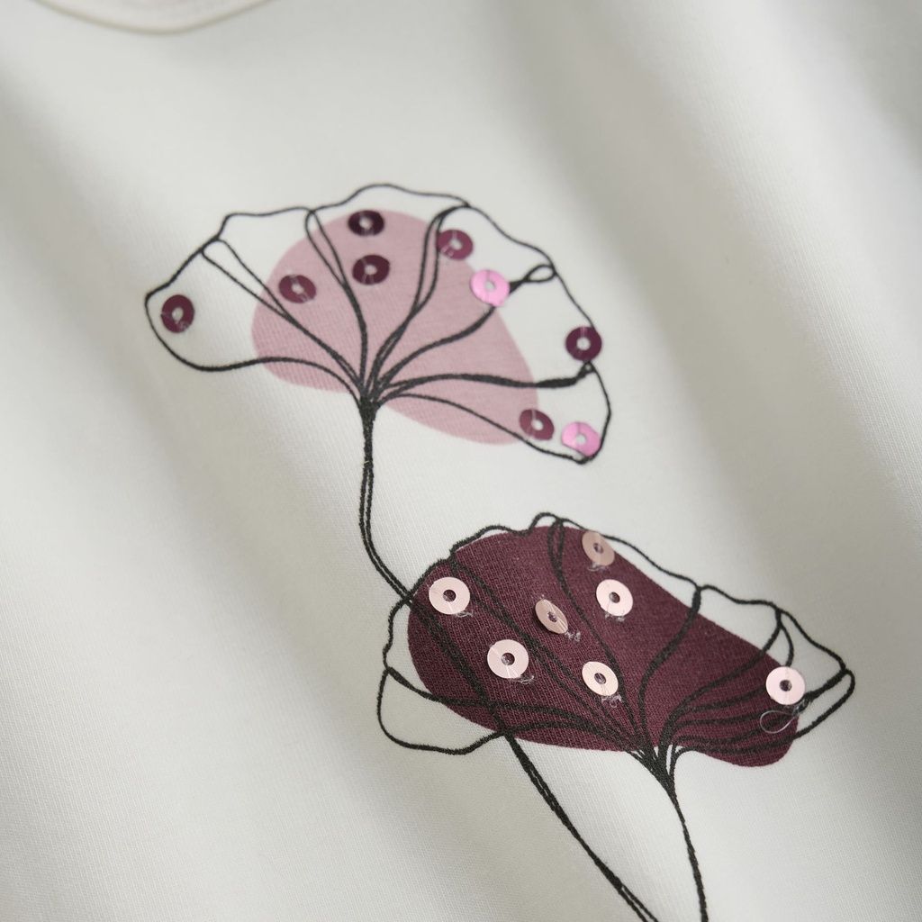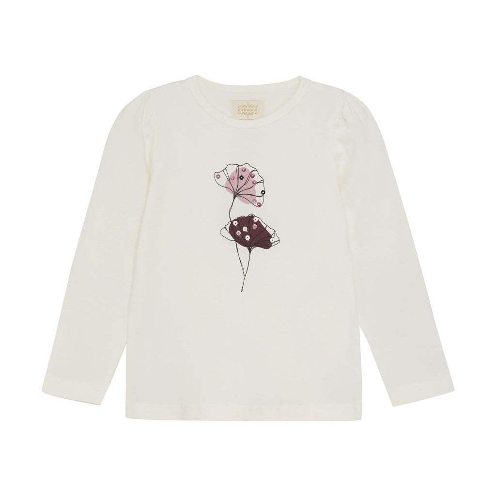Dieses langärmlige Shirt von Creamie begeistert mit einem floralen Motiv, das durch aufgenähte Pailletten zusätzlich glänzt. Leichte Puffärmel an den Schultern verleihen dem Shirt eine verspielte Note, während die dicke Baumwollqualität für hohen Tragekomfort sorgt.