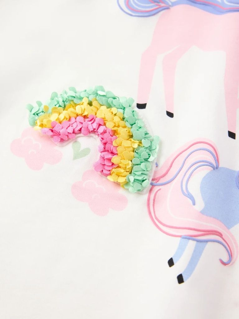 Grosser Einhorn- und Regenbogen-Print mit plastischen Details