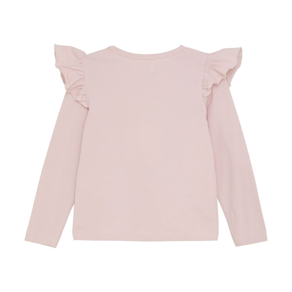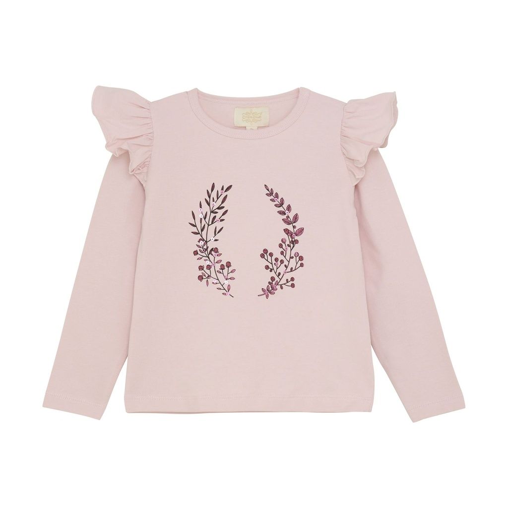 Dieses süsse T-Shirt mit langen Ärmeln von Creamie begeistert durch einen grossen Blumenprint mit funkelnden Pailletten, der für einen fröhlichen und verspielten Look sorgt. Rüschen an den Schultern setzen dabei einen hübschen Akzent und machen das Shirt zu einem echten Hingucker.