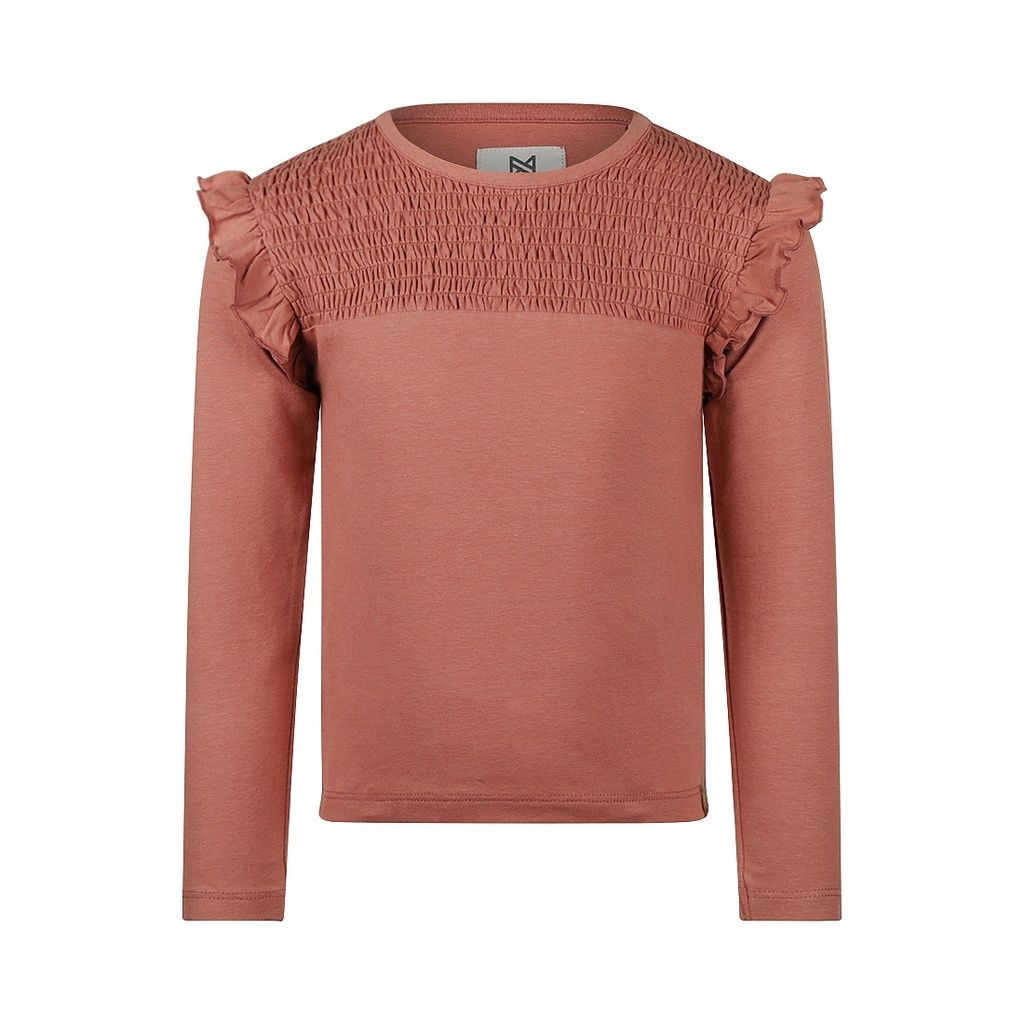 Der gesmokte Oberteil und die Rüschen an den Schultern verleihen dem Langarmshirt eine besonders charmante Note, die jedes Outfit aufwertet. Ob kombiniert mit einem Rock für einen festlicheren Look oder lässig mit einer Jeans - dieses Shirt ist ein vielseitiger Allrounder für jeden Tag.