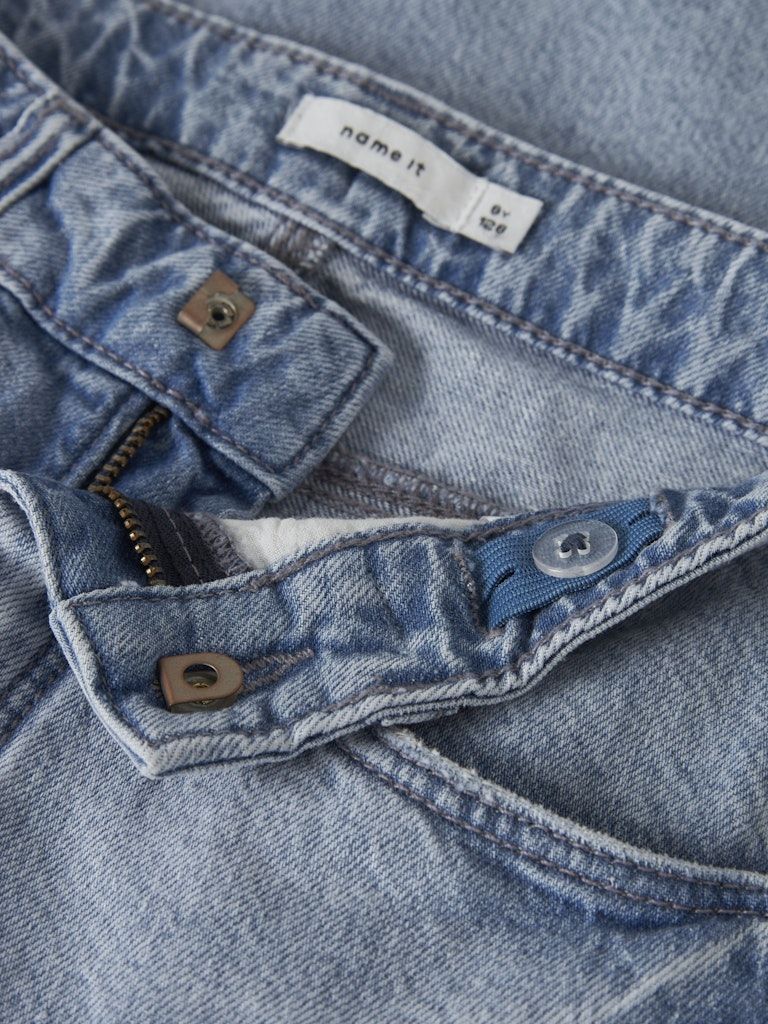 Diese Jeans-Shorts von name it sind ein echtes Must-have für trendige Kinder-Outfits. Der robuste Denim sorgt für einen authentischen Look, während die starke Waschung mit Abnutzungseffekten einen besonders coolen Used-Style verleiht.