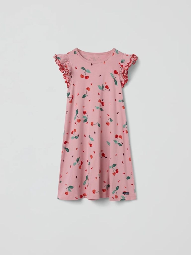 Dieses kurzärmlige Nachthemd aus luftigem Ecovero™ Viscose-Trikot sorgt für ein angenehmes Tragegefühl in warmen Nächten. Zarte Rüschen an den Schultern verleihen ihm eine verspielte Note, während der Kirschen- und Herzen-Print für süsse Träume sorgt.