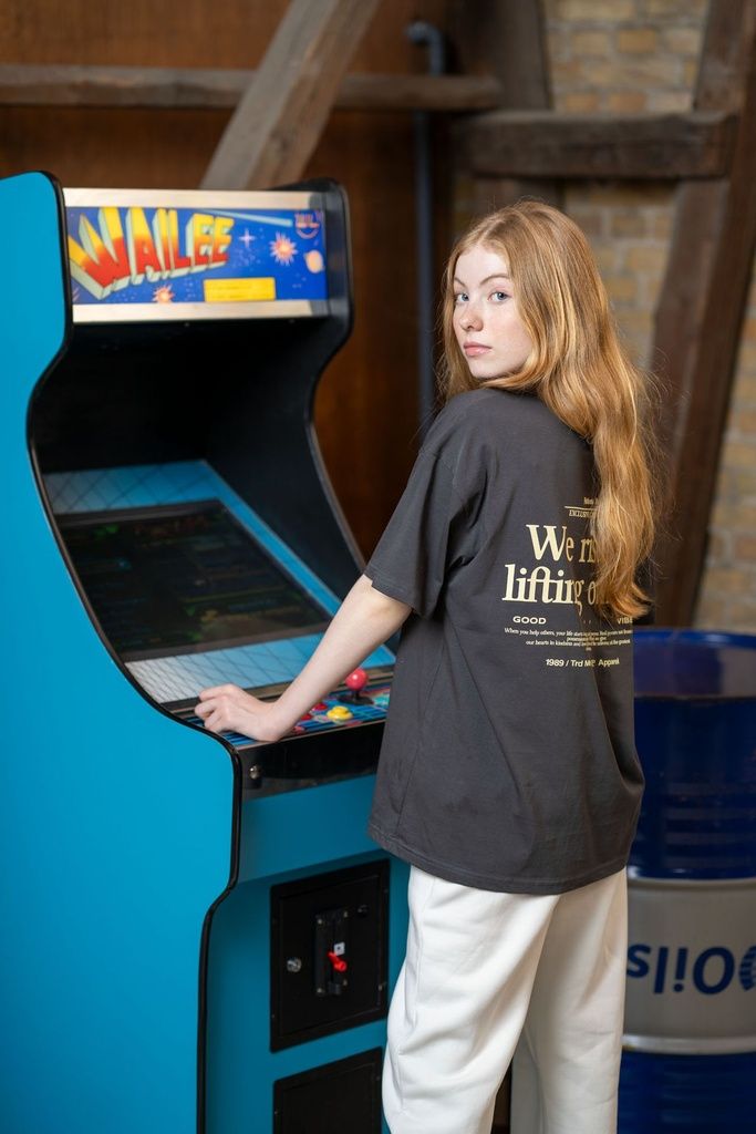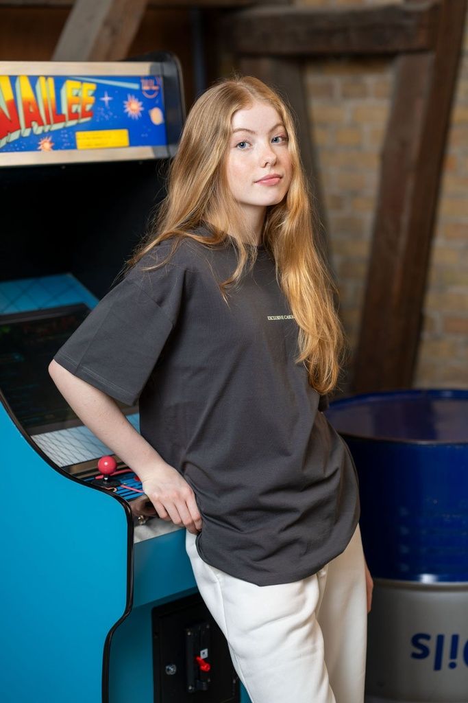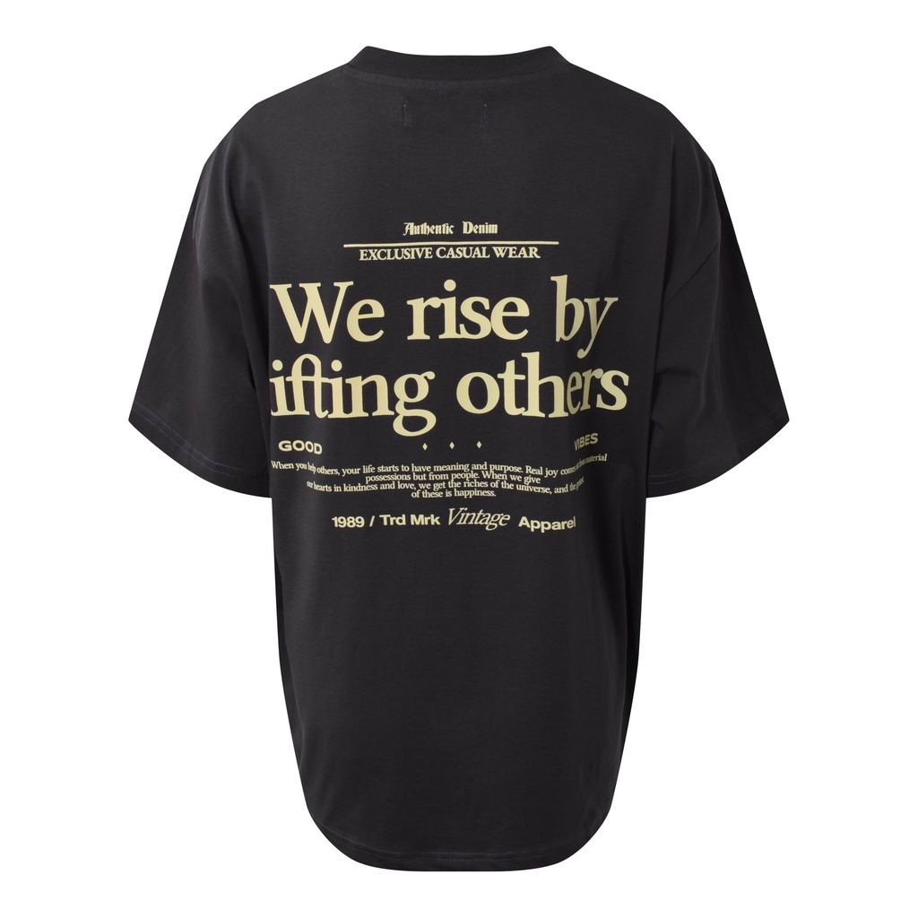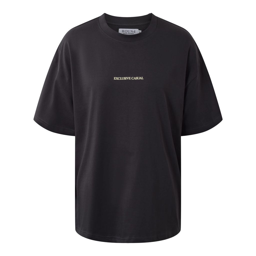 Kurzärmeliges T-Shirt mit Druck auf Vorder- und Rückseite. Übergrosse Passform.