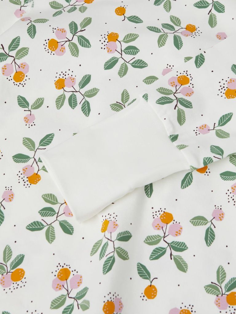 Der zweiteilige Schlafanzug aus weicher Bio-Baumwolle ist durchgehend mit Beeren bedruckt. Das Oberteil hat extra lange Ärmelbündchen zum Umschlagen.