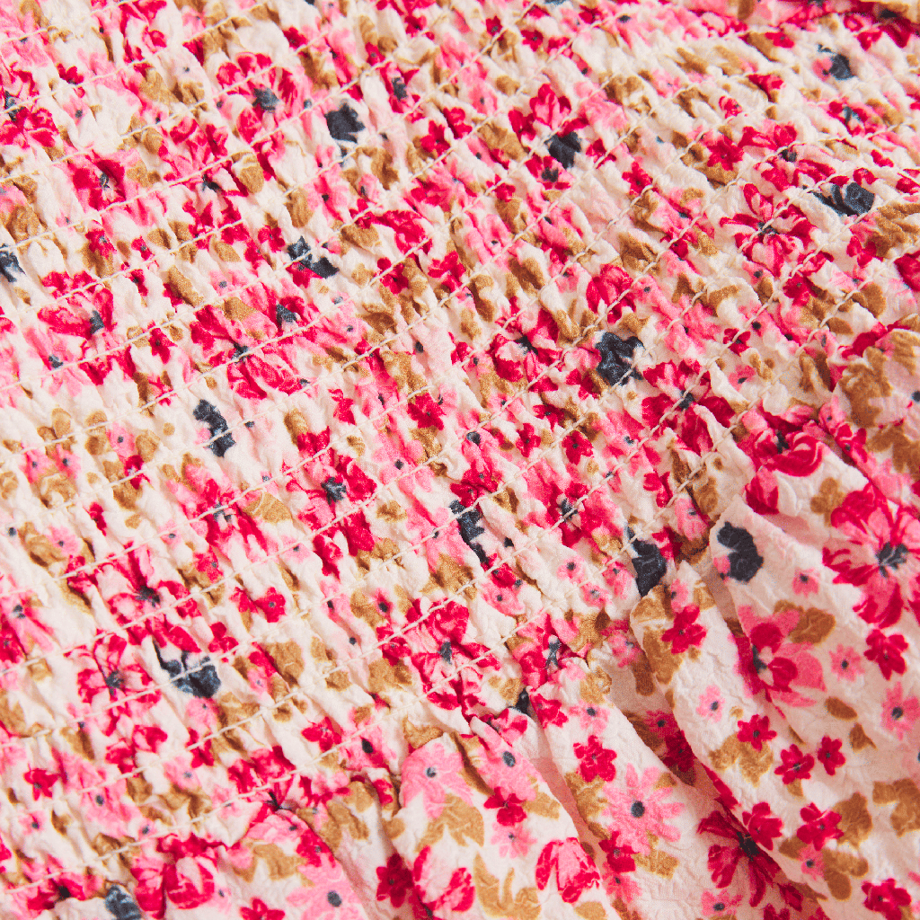 Dieses Creamie Kleid überzeugt mit verspielten Details und hohem Tragekomfort. Die Ballonärmel mit Gummizug an der Ärmelöffnung und über der Schulter sorgen für eine gute Passform und eine charmante Silhouette. Der Smok-Effekt auf der Brust setzt einen eleganten Akzent und verleiht dem Kleid einen modernen, femininen Look - ideal für Alltag, Feste oder besondere Anlässe.