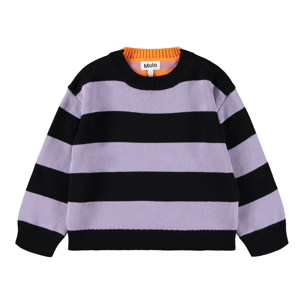 Ein echter Hingucker für kleine Modefans: Dieser Pullover aus weicher Baumwolle begeistert mit seinen lebendigen Farbstreifen - vorne in Lila und Schwarz, hinten in Lila und Orange. Dank der gerippten Abschlüsse am Halsausschnitt, an den Ärmeln und am Saum sitzt der Pullover bequem und bleibt in Form.