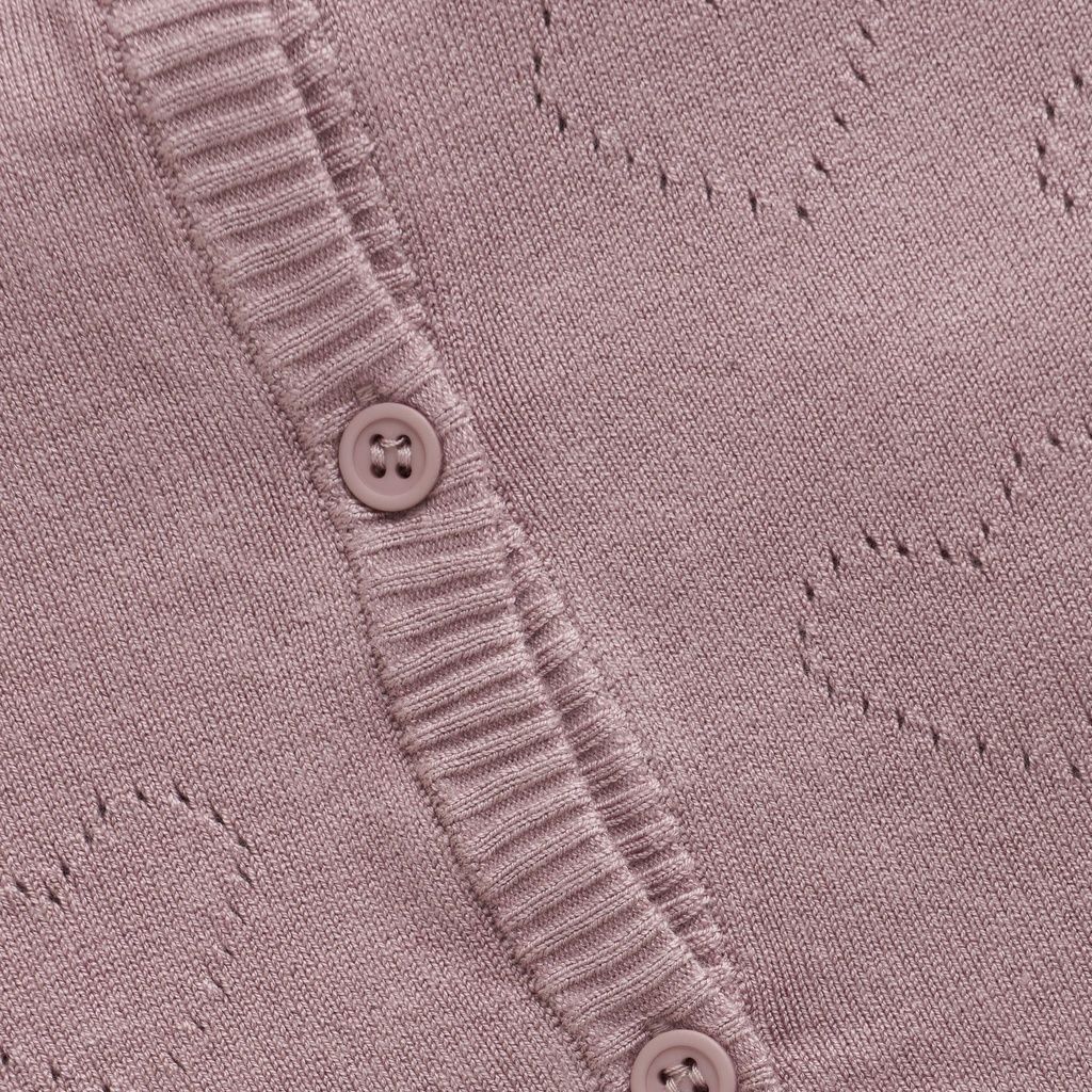 Diese feine Strickjacke von Creamie überzeugt durch ihr schlichtes Design mit feinem Stricklochmuster auf der Vorderseite. Die gerippten Kanten an Ausschnitt, Ärmelöffnungen und Saum sorgen für einen schönen Abschluss, während die dünne, leichte Qualität hohen Tragekomfort bietet und sich ideal für das Layering eignet.