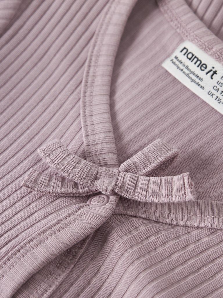 Der gerippte Strick mit feinem Längsstreifenmuster überzeugt durch seine angenehme Elastizität und sorgt für hohen Tragekomfort. Der klassische Rundhalsausschnitt und die langen Ärmel machen die Strickjacke zu einem unkomplizierten Begleiter für jede Jahreszeit. Besonders charmant: die zarten Schleifendetails, die dem Design eine verspielte, hochwertige Note verleihen.