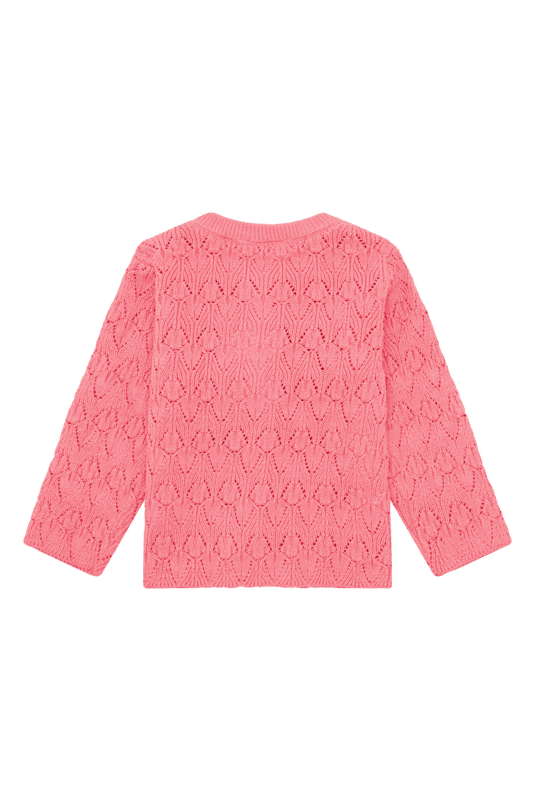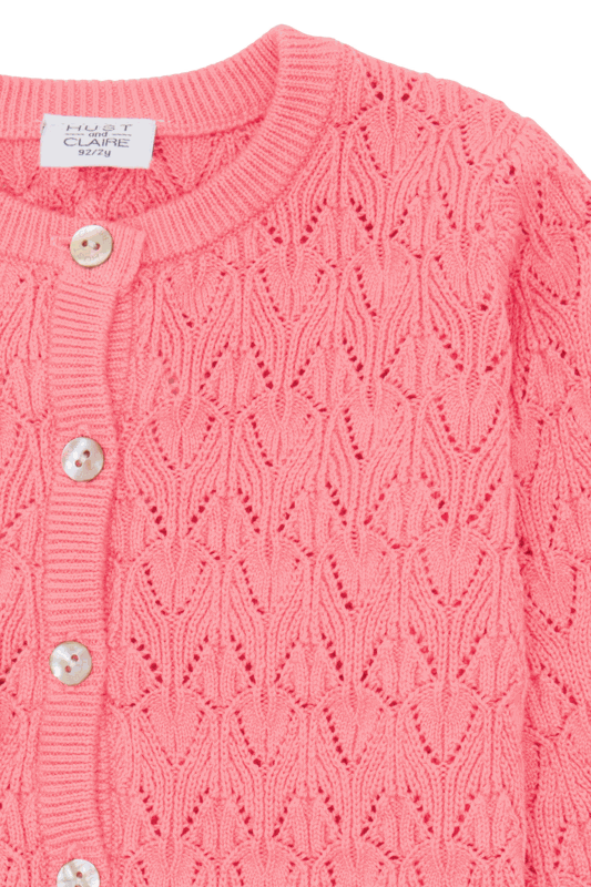 Diese Strickjacke aus weicher Baumwolle mit einem bezaubernden Lochmuster ist der perfekte Begleiter für kühlere Tage. Der Knopfverschluss vorne sorgt für einen praktischen und eleganten Look, während die leichte und atmungsaktive Bio-Baumwolle für hohen Tragekomfort sorgt.