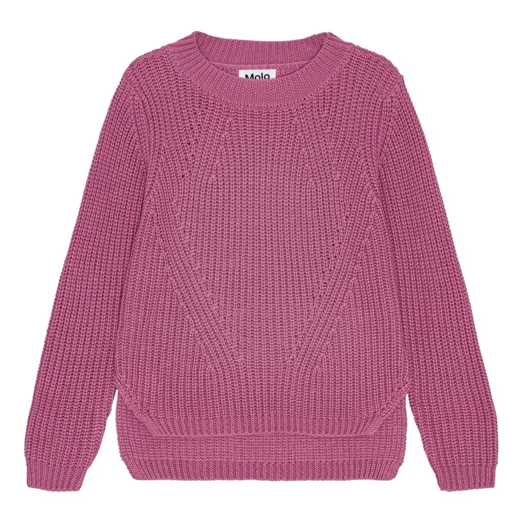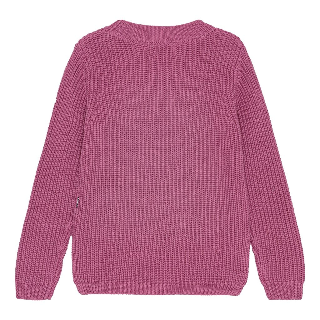 Langarm-Pullover aus weicher Öko-Baumwolle. Der Pullover ist im Rippmuster gestrickt mit feinen Zunahmen und Abnahmen. Er hat hinten extra Länge und seitliche Schlitze.
