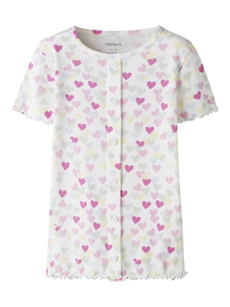 Der Rundhalsausschnitt und die kurzen Ärmel sorgen für einen klassischen Look, während die Knopf-Details dem Shirt einen besonderen Akzent verleihen. Ein vielseitiges Lieblingsstück, das sich leicht kombinieren lässt und in keiner Kindergarderobe fehlen sollte.
