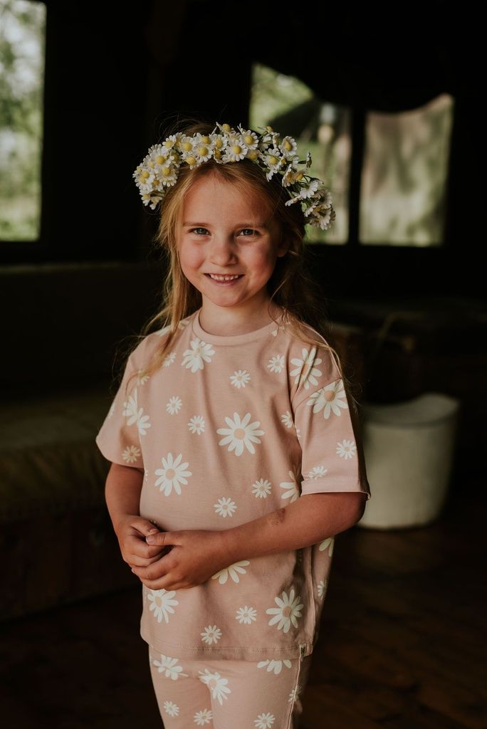 Koko Noko Mädchen-T-Shirt - Zartrosa mit fröhlichem Gänseblümchenmuster
