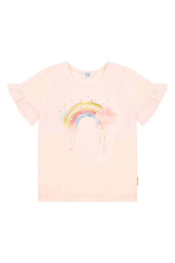 Hust & Claire - T-Shirt mit Regenbogenmotiv & Rüschenärmeln