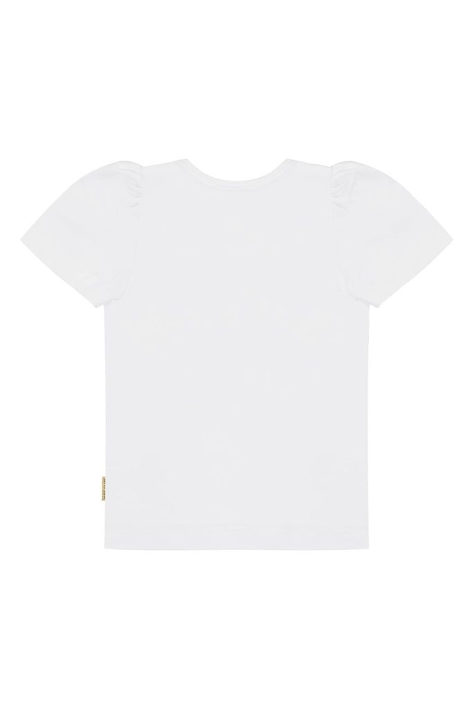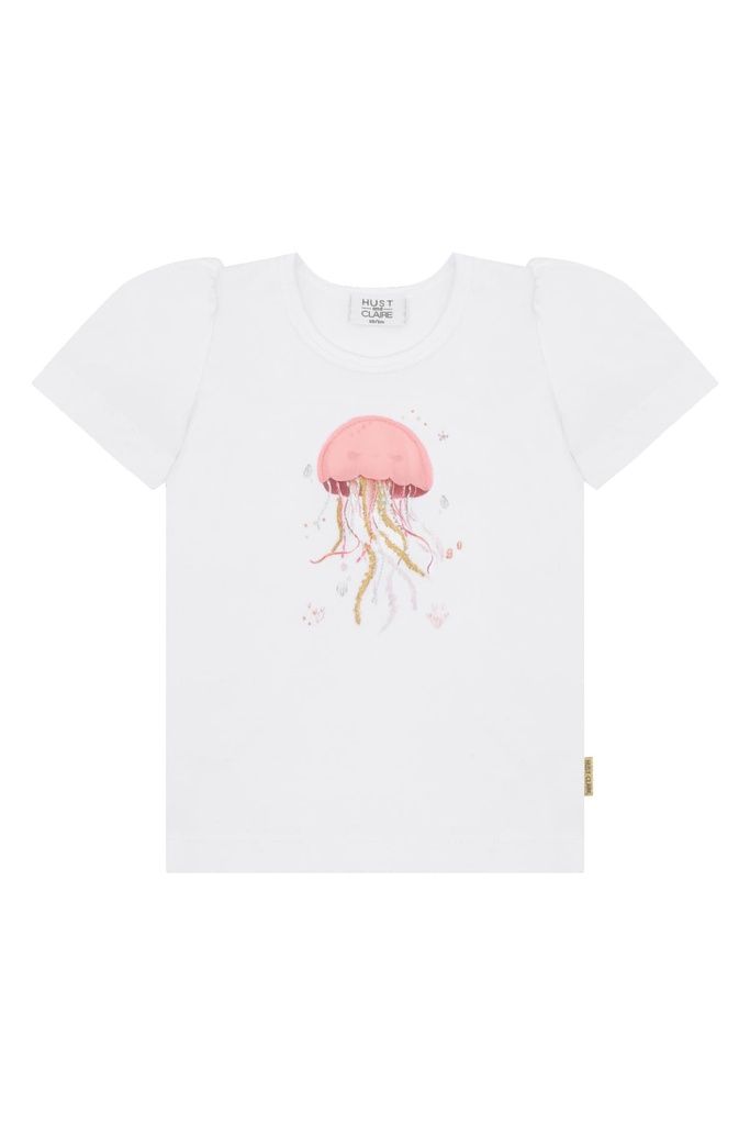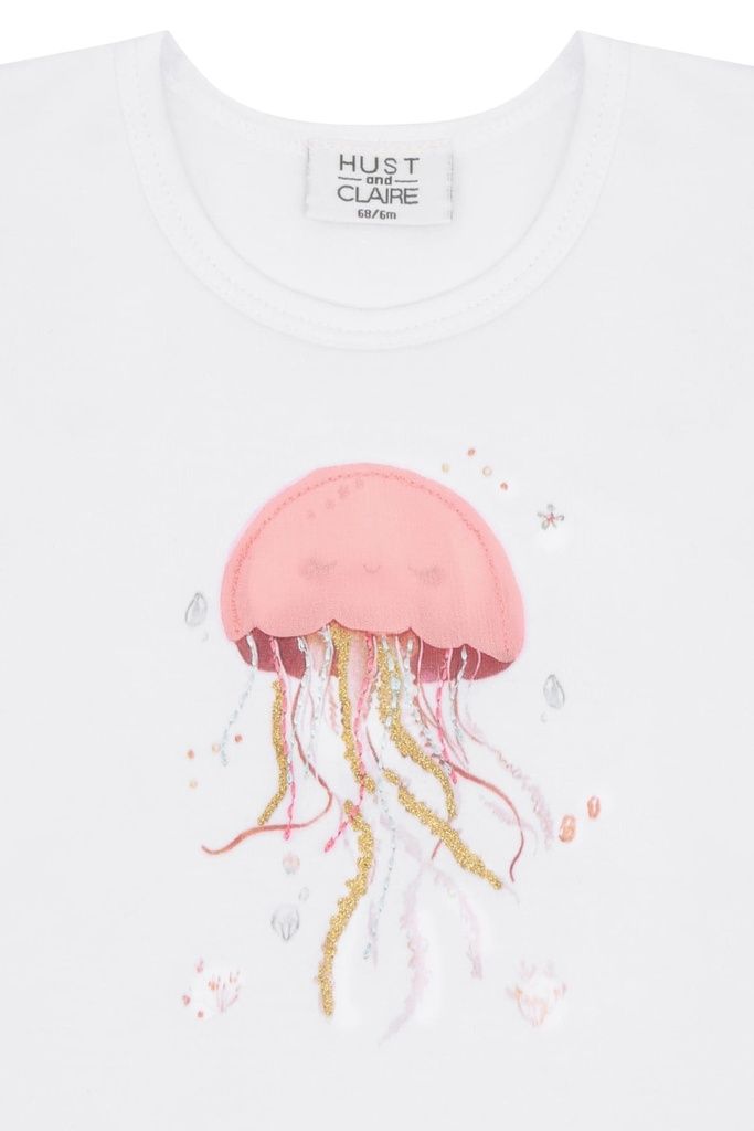 Der süsse Quallen-Print mit zarten Glitzerdetails und feinen Stickereien bringt Leichtigkeit und Farbe in jedes Outfit. Leicht gepuffte Ärmel verleihen dem Shirt eine verspielte Silhouette und machen es zu einem echten Hingucker - perfekt für Alltag, Spiel und kleine Sommerabenteuer.