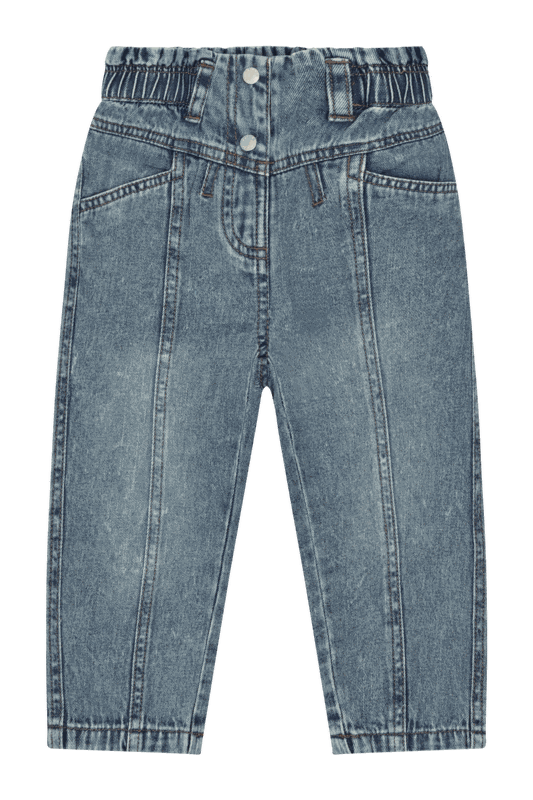 Besondere Details an den Beinen machen die Hose zu einem modischen Highlight, das sich von klassischen Jeans abhebt. Der elastische Gummibund sorgt dafür, dass die Jeans bequem sitzt und auch bei langen Tagen nicht verrutscht.
