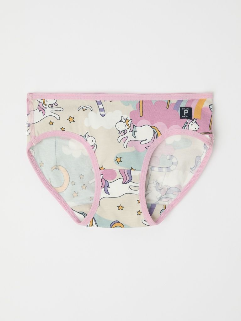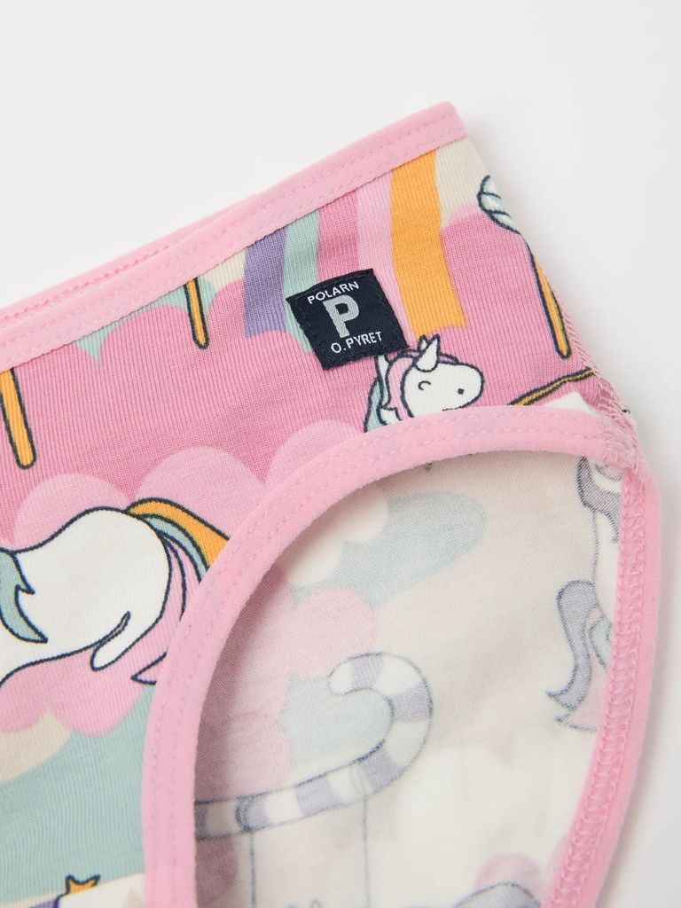 Das Unterhöschen aus weicher Bio-Baumwolle ist durchgehend mit Einhörnern und rosa Wolken bedruckt. Das Höschen ist dank besonders weicher Nähte wunderbar sanft zur Haut.