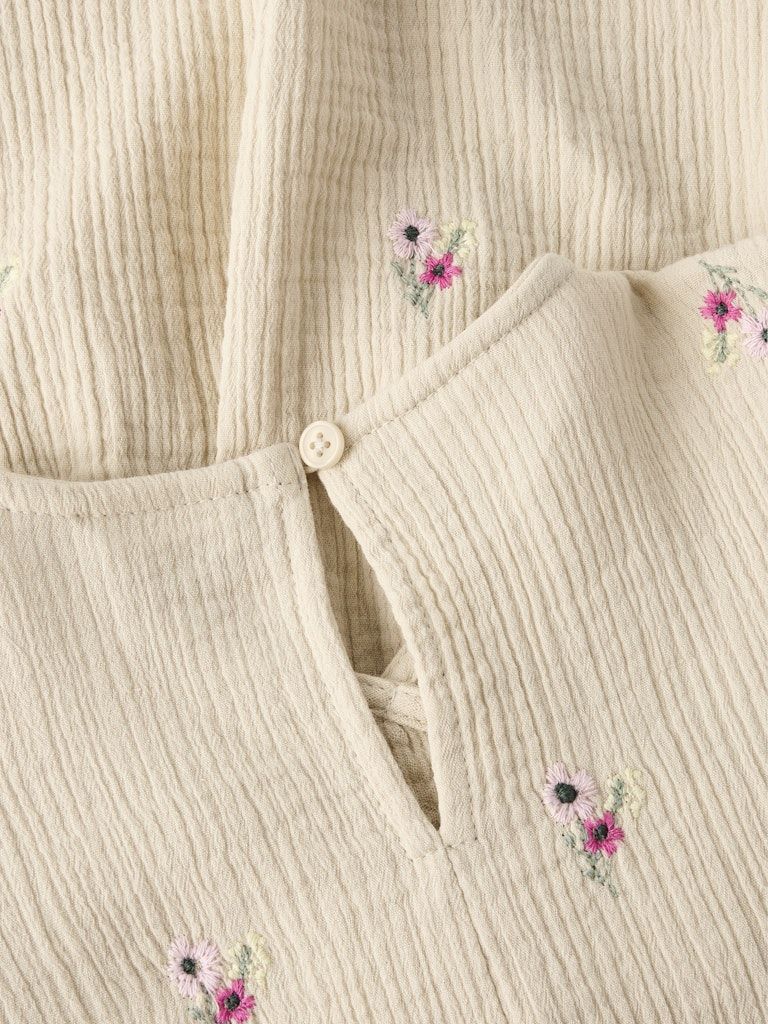 Der leichte Musselin-Stoff ist weich, luftig und besitzt eine natürliche Struktur, die dem Kleid eine besonders schöne Optik verleiht. Dadurch trägt sich das Kleid angenehm auf der Haut und bietet viel Bewegungsfreiheit für aktive Kinder.