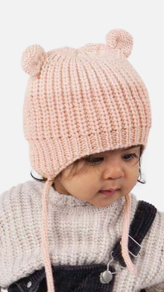 Die Natsu Beanie ist aus 100 % Acryl gefertigt. Sie ist eine grob gestrickte, melierte Mütze mit Ohren und Ohrenklappen mit Kordelzug an den Seiten.