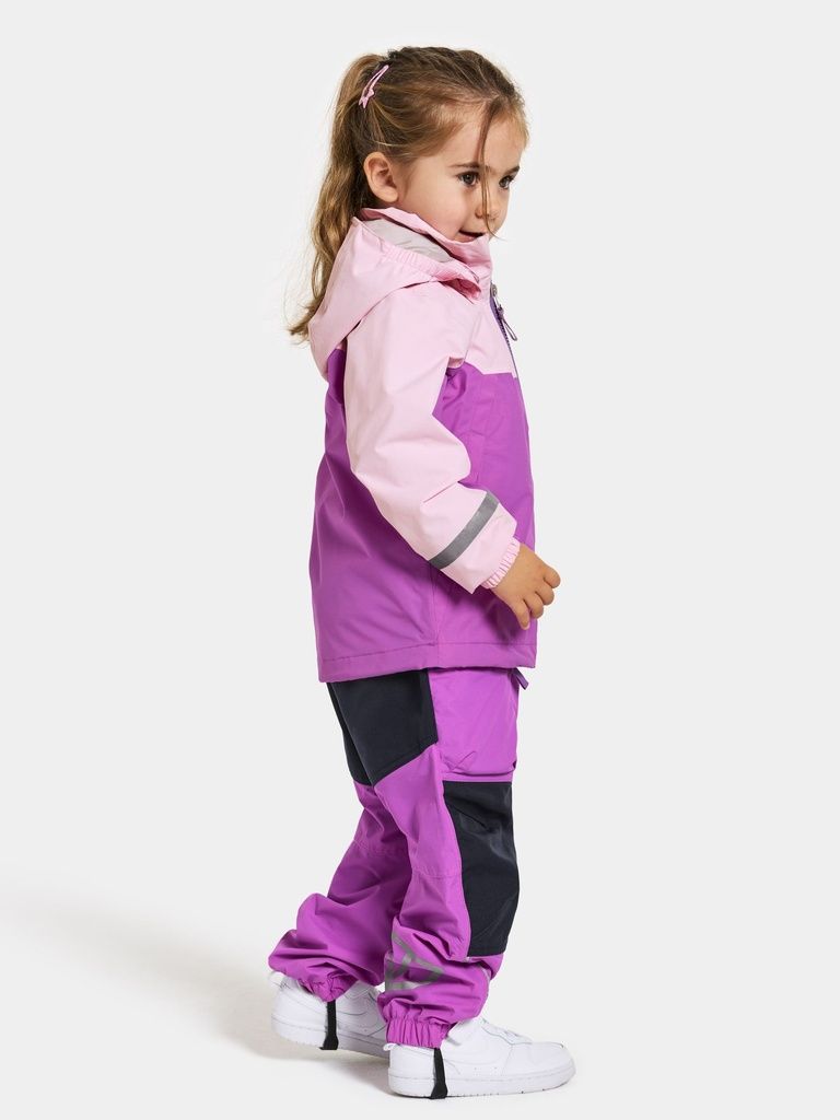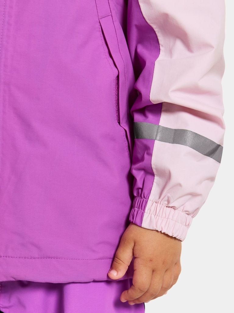 Diese Jacke ist zu 100% wind- und wasserdicht, mit allen Nähten versiegelt für zusätzlichen Schutz. Leicht verlängert im Rücken, geformte Ärmel und eine verstellbare Kapuze. Reflektierende Drucke auf der Vorderseite und um die Ärmel herum sowie zwei Taschen an der Seite der Jacke. Die Ärmel können um bis zu eine Größe verlängert werden mit der "Extend size"-Funktion durch Abtrennen der angegebenen Innennähte. Kombinieren Sie sie mit der Pilvi-Hose. Die wasserabweisende Oberflächenbehandlung ist PFC-frei.