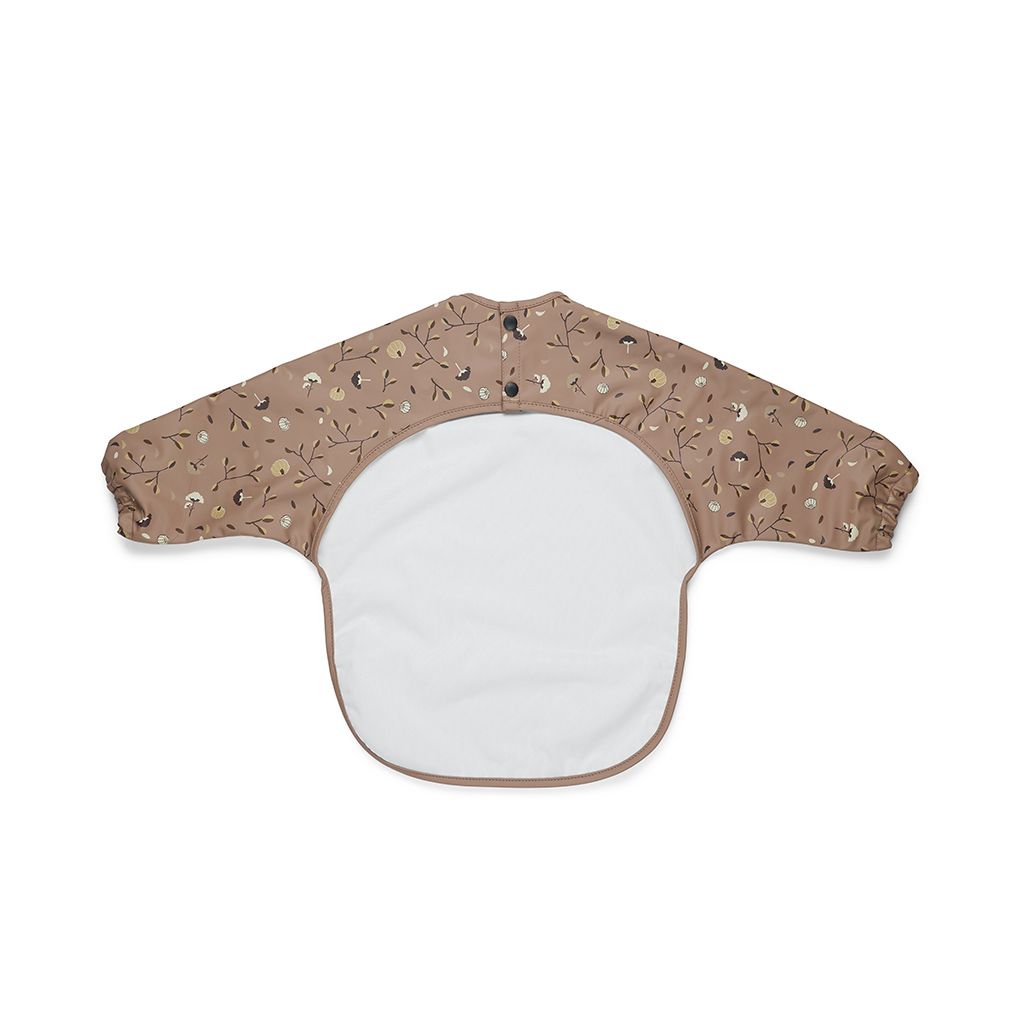 Ein plastifiziertes Lätzchen mit Ärmeln schützt die Kleidung von Babys und Kleinkindern beim Essen.