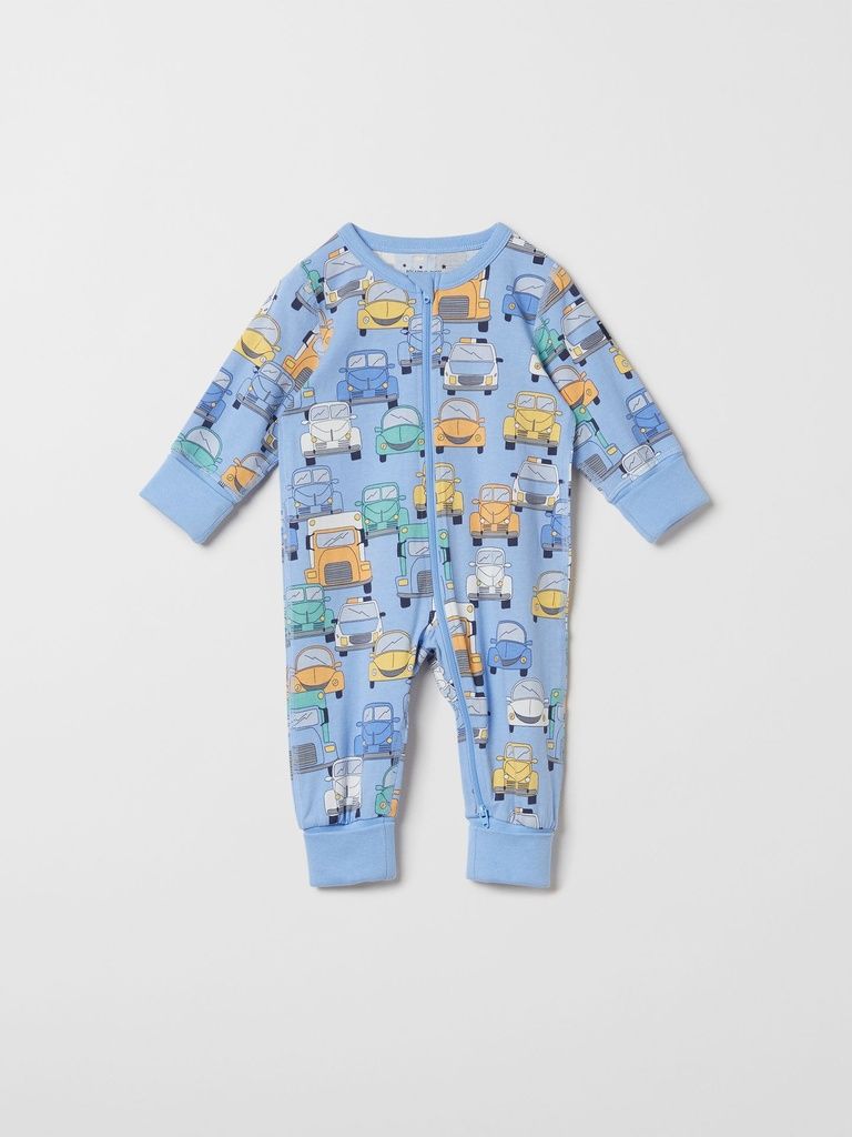 Ein bequemer Schlafanzug-Overall für kleine Abenteurer mit einem niedlichen Autos und Fahrzeuge-Motiv.