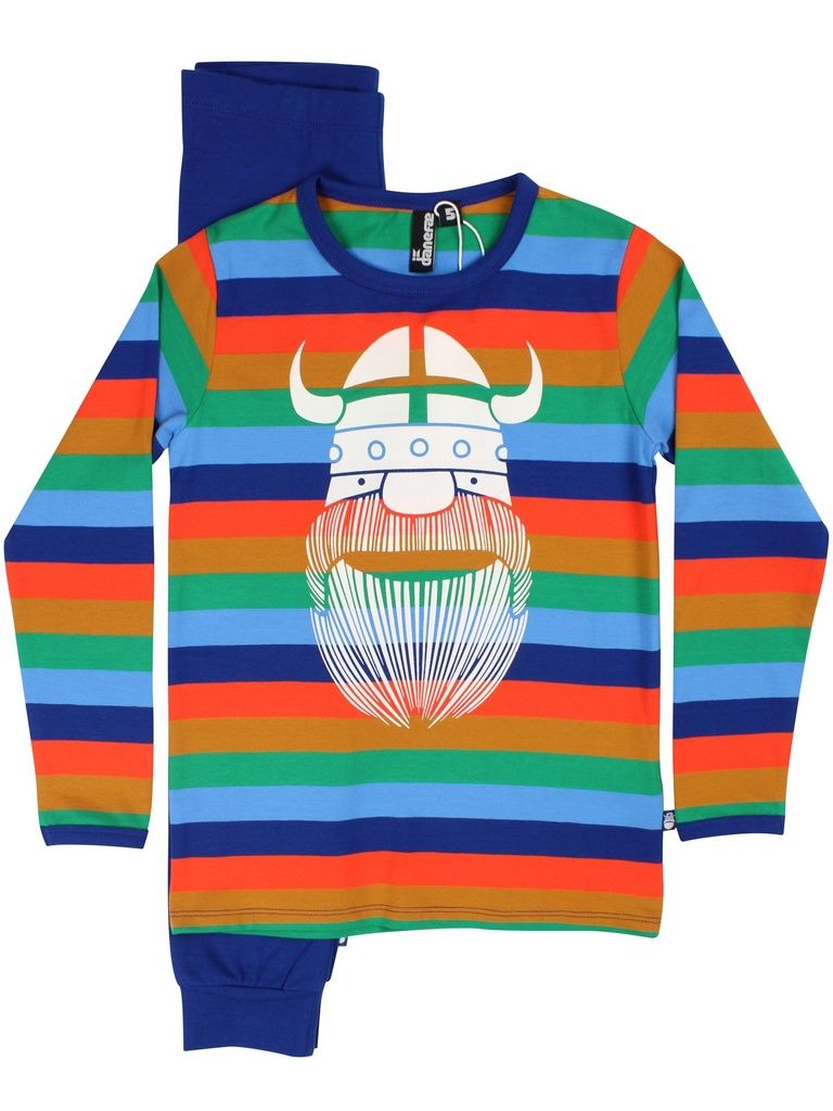 Ein gestreiftes Pyjama-Set mit einem coolen Wikinger-Thema.