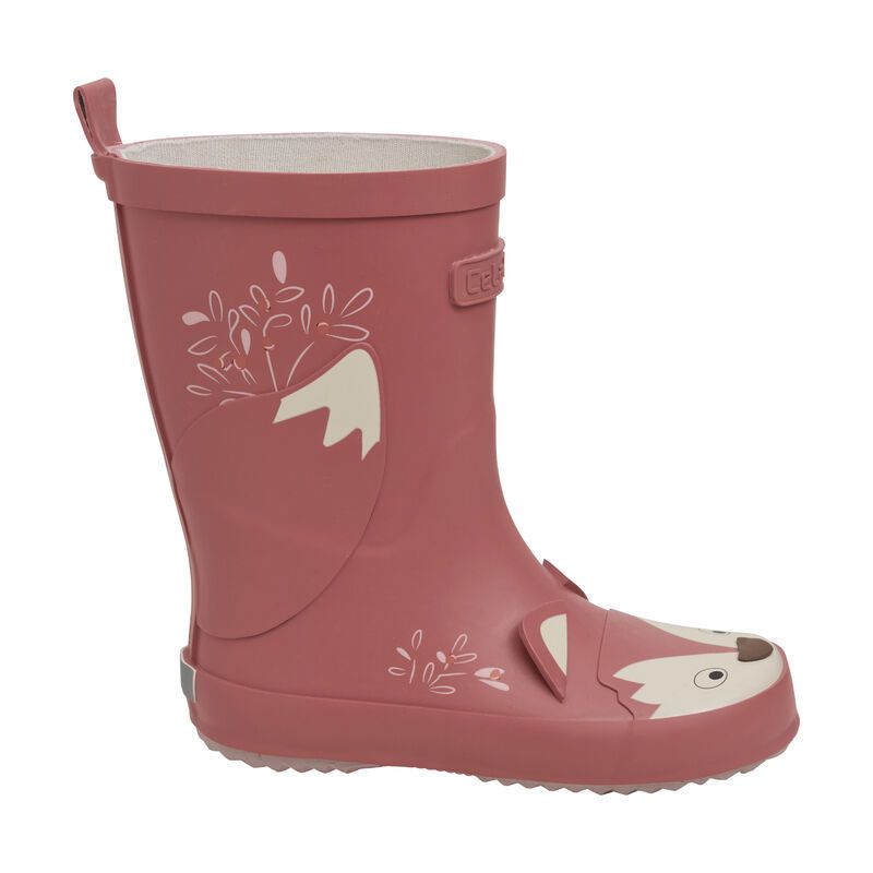 Gummistiefel mit Fuchsgesicht von CeLaVi. Die Gummistiefel bestehen zu 100 % aus wasserdichtem Naturkautschuk. Die Gummistiefel haben tiefe Rillen in der flexiblen Sohle, die den Halt erleichtern.
