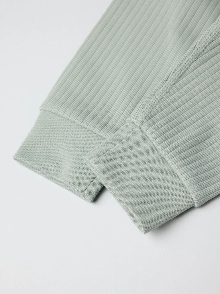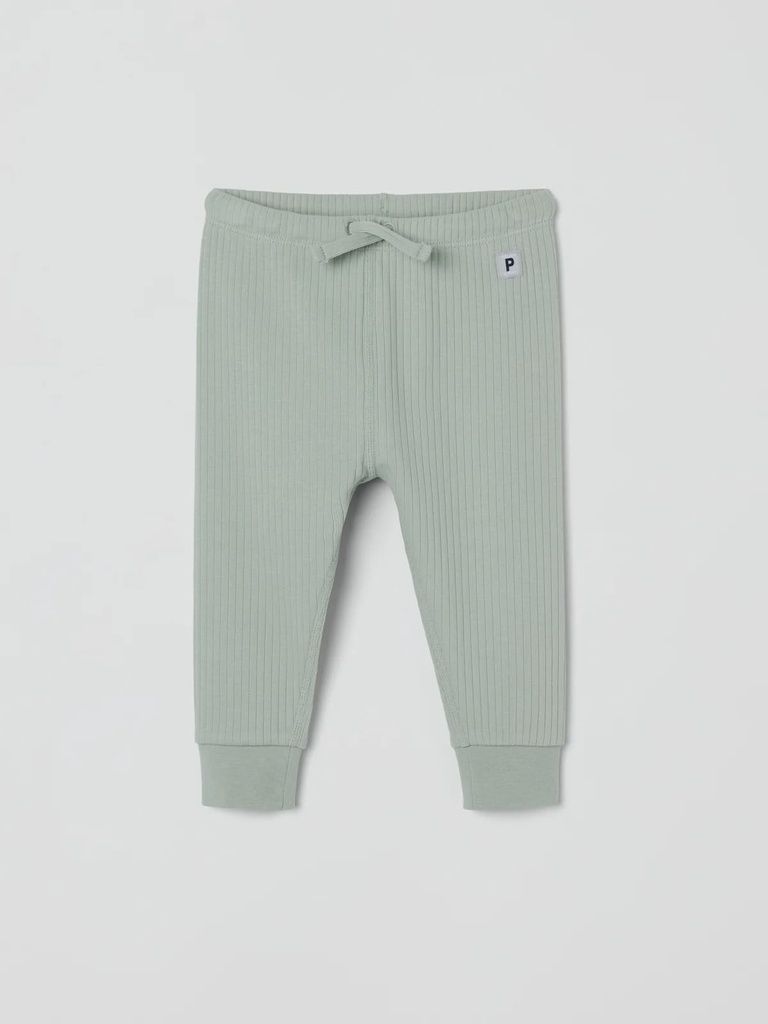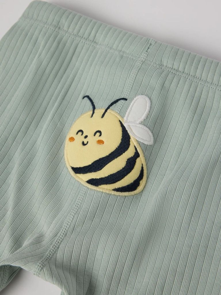 Hose aus Rippenstrick in weicher Bio-Baumwolle für Babys mit niedlicher Bienenapplikation auf dem Rückenteil. Der elastische Bund kann mit einem Bindeband reguliert werden. Die Beinabschlüsse sind für eine bequeme Passform mit weichen Bündchen besetzt.