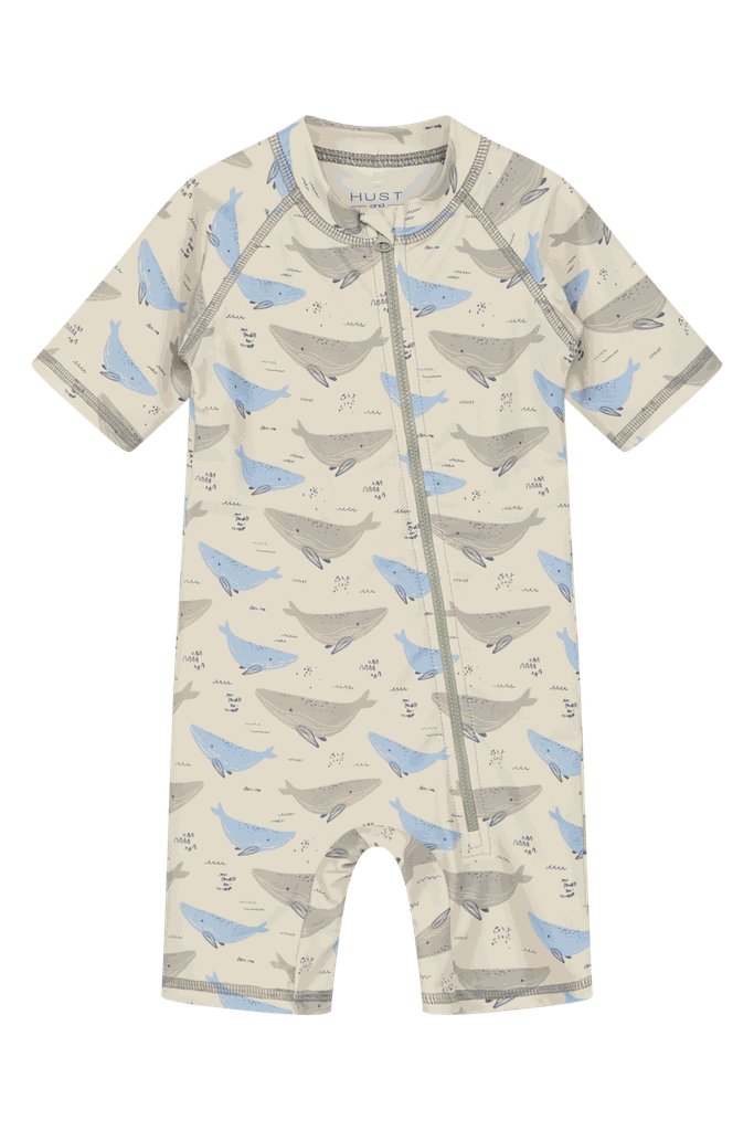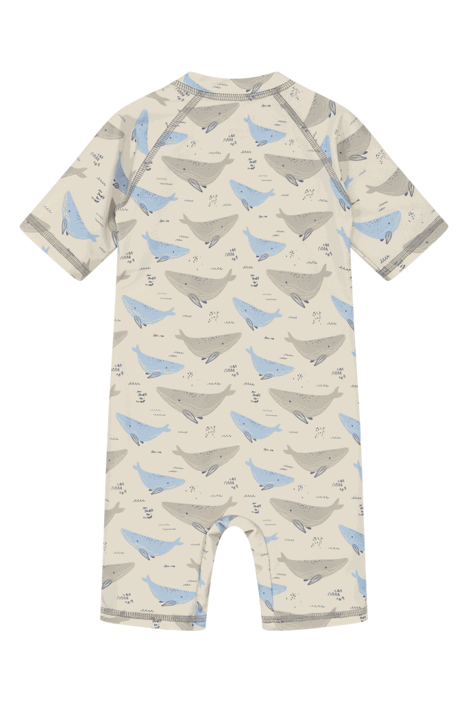 Entdecke das trendige Wal-Motiv in unserem Badeanzug mit kurzen Ärmeln. Mit UV50+/UPF50-Schutz, umweltfreundlichem Material und Oeko-Tex 100® Zertifizierung.