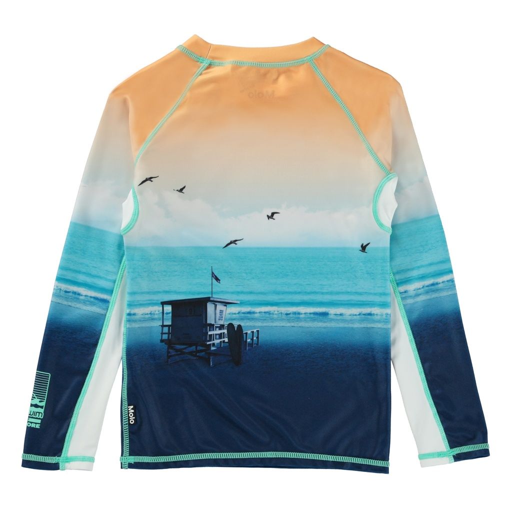 Badeshirt in wunderschönen Farben mit langen Ärmeln und Aufdruck. Das Shirt hat eine leichte und bequeme Passform, lässt sich leicht über den Kopf ziehen und bietet zudem einen hohen UV-Schutz von 50+, der effektiv vor Sonnenstrahlen schützt.