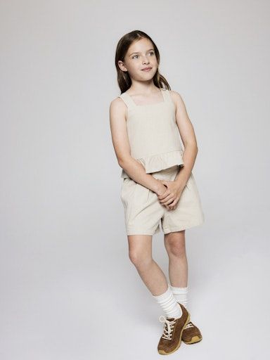 Bringen Sie Licht, Leben und Natur in das Outfit Ihres Kindes mit fröhlichen Frühlingsstyles, die Spass und Farbe in den Alltag zaubern. Diese Shorts aus robuster Webware mit markantem Gittermuster und fein strukturierter Oberfläche sorgen für einen klaren, klassischen Look, der zu jedem Abenteuer passt. Ideal für sonnige Tage voller Spiel und Spass!