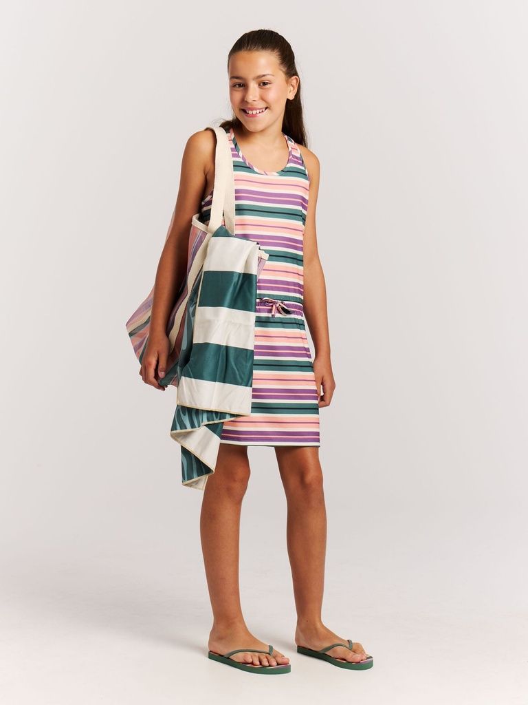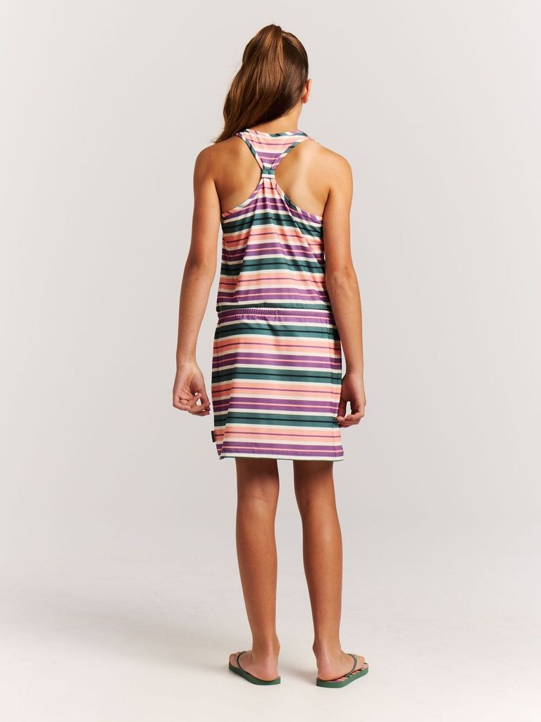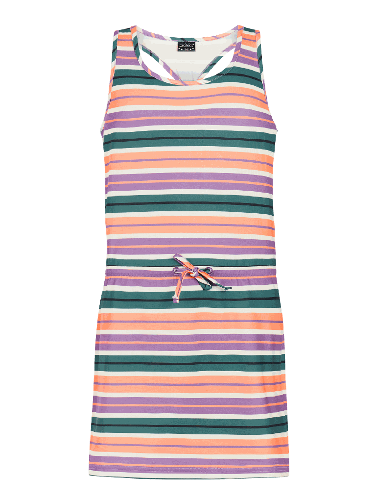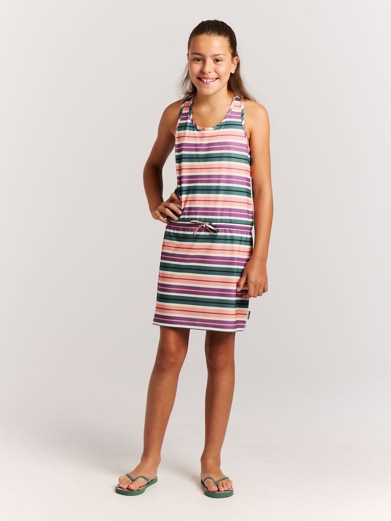 Mit dem PRTAudrey JR von Protest erhält Ihr Kind ein nachhaltiges und stylisches Sommerkleid, das Komfort, Stretch und Bewegungsfreiheit perfekt vereint. Hergestellt aus recyceltem Material der PVRE Green-Serie, liegt der weiche Jersey-Stoff angenehm auf der Haut, während der elastische Taillenbund mit Kordelzug für eine schöne Passform sorgt. Ideal für aktive Mädchen, die draussen spielen, rennen oder Abenteuer erleben - mit dem PRTAudrey JR ist Ihr Kind bereit für jeden Sommertag im typischen Protest-Stil.