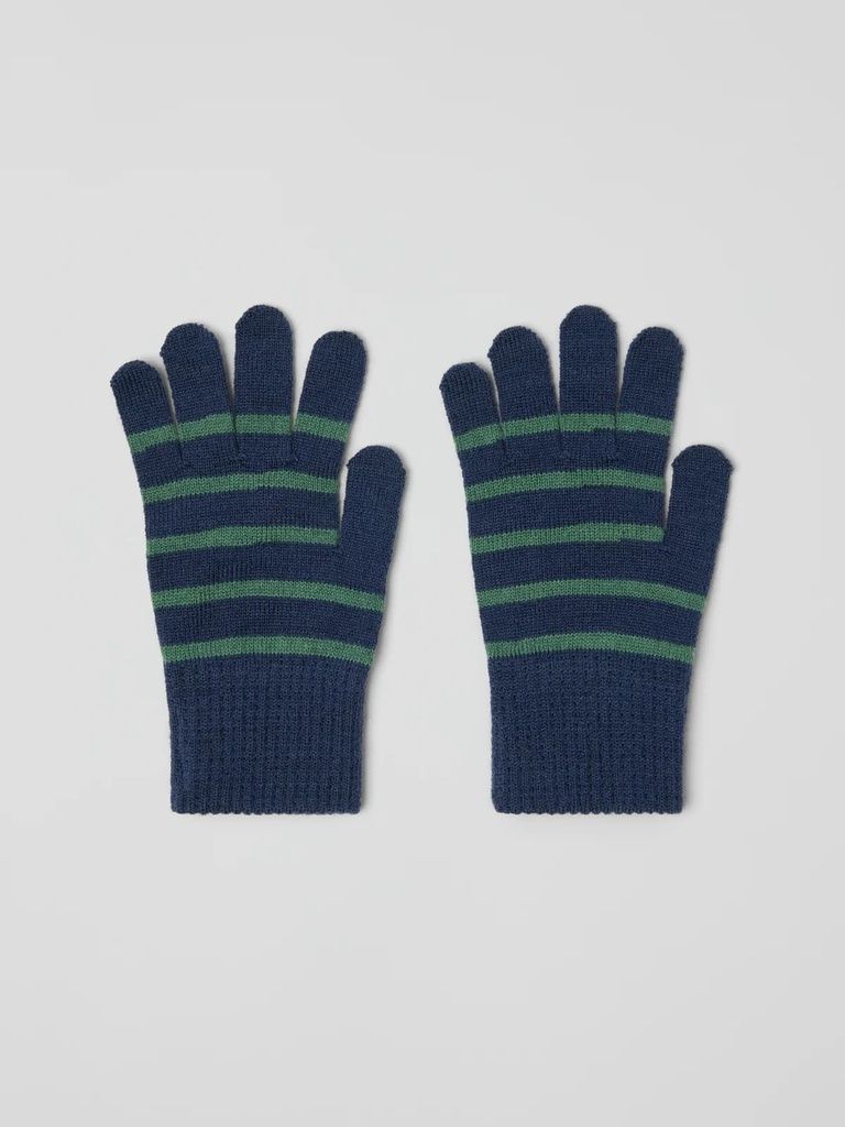 Perfekt für mildes Wetter: Diese weichen Fingerhandschuhe von Polarn O. Pyret halten kleine Hände angenehm warm. Der elastische Wollmix sorgt für eine flexible Passform, die sich optimal an die Handgrösse anpasst. Das klassische Streifenmuster verleiht den Handschuhen einen zeitlosen Look, der zu jedem Outfit passt.