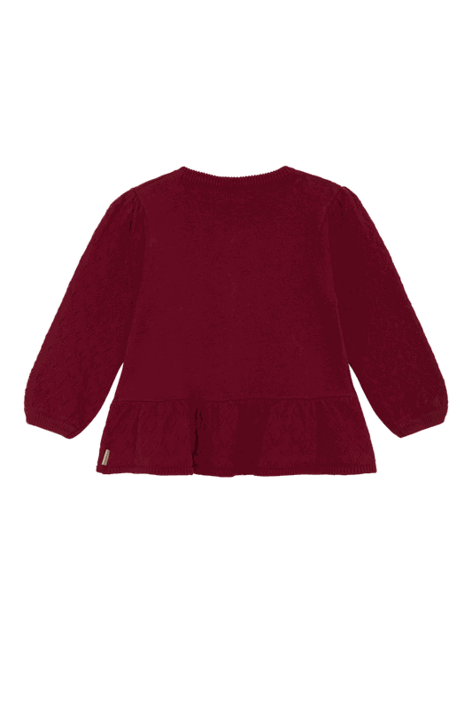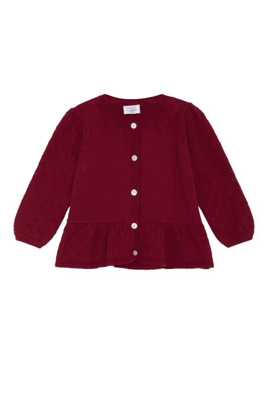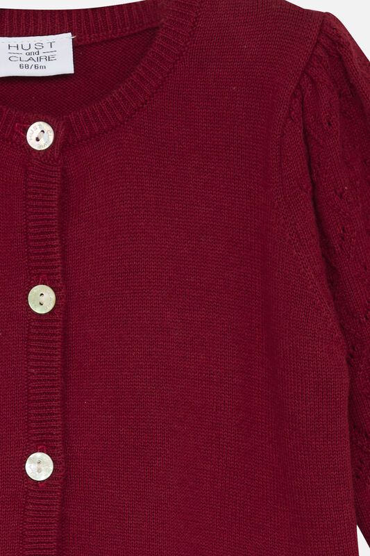 Strickjacke aus einem bequemen Stoff mit Knopfverschluss auf der Vorderseite und einem schönen Lochmuster an den Ärmeln und am Saum.