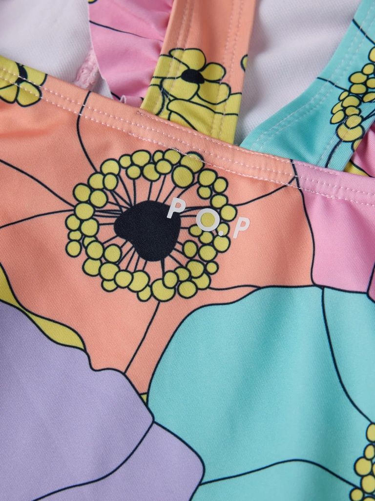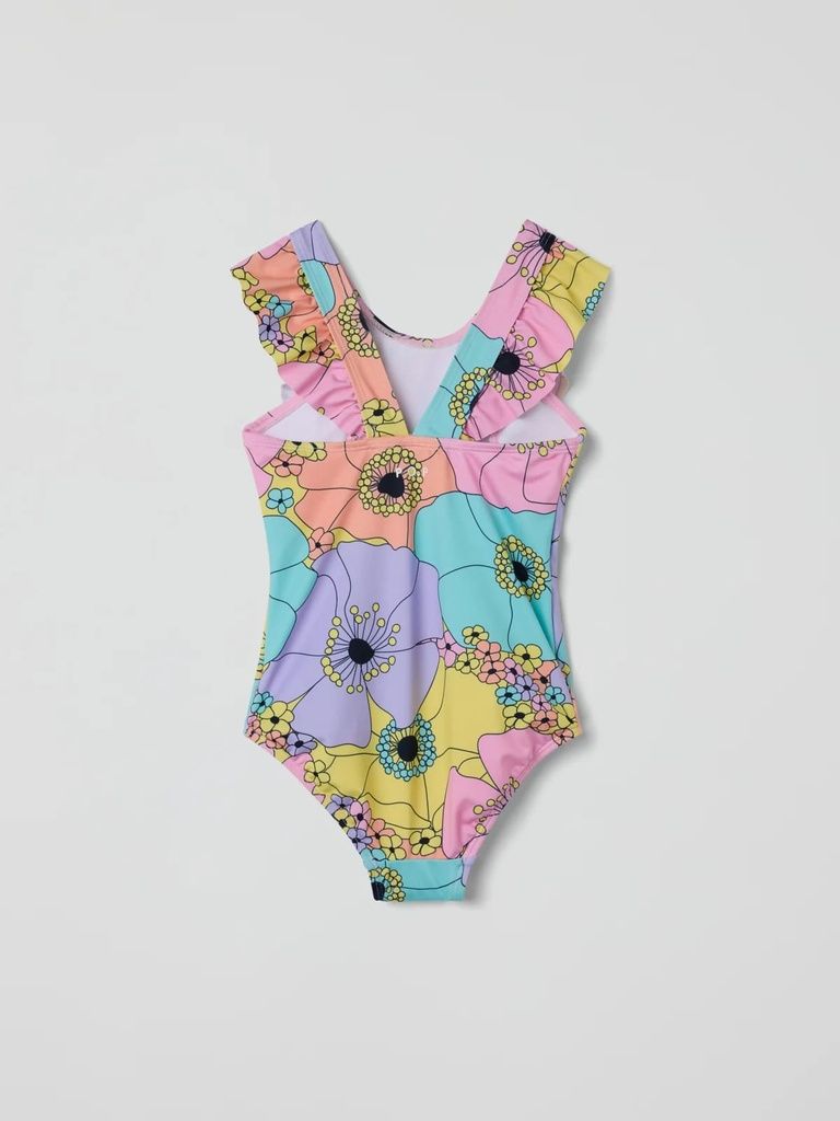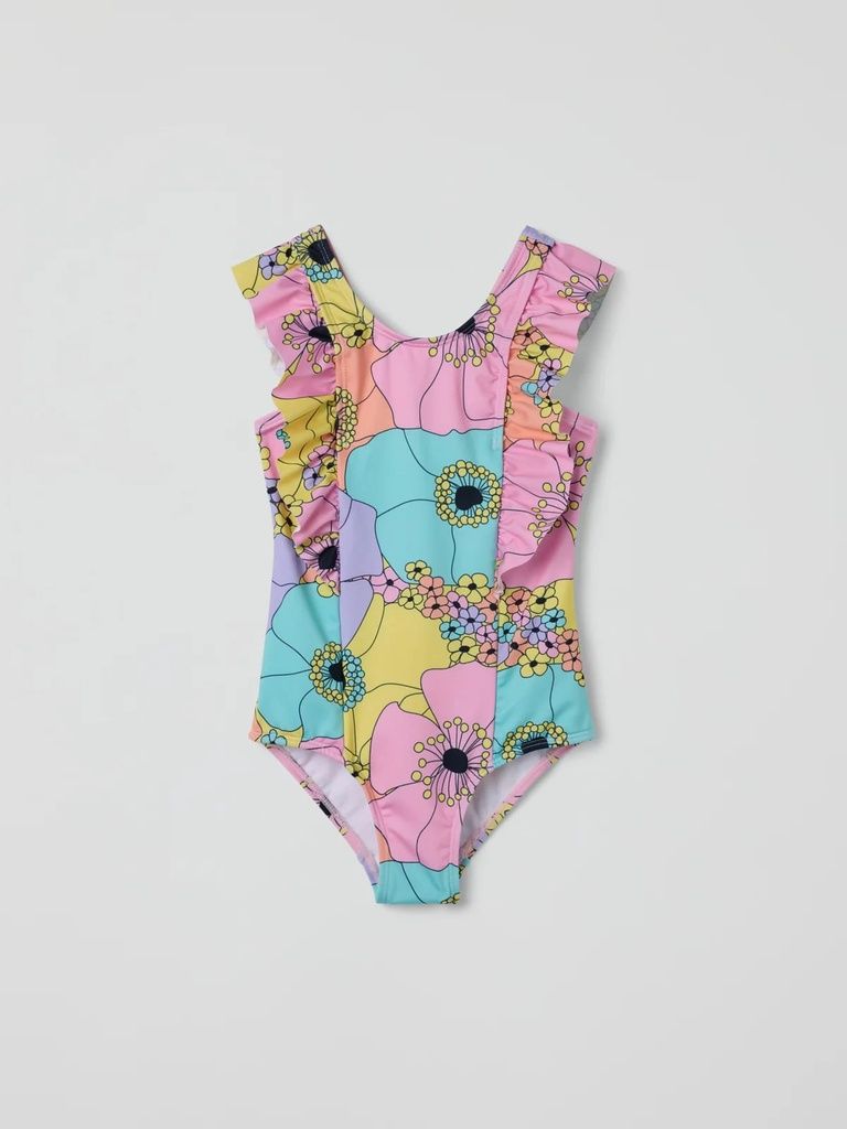 Dieser geblümte Badeanzug aus 100 % recyceltem Polyester ist nicht nur hübsch anzusehen, sondern auch wunderbar bequem. Die breiten Träger mit verspielten Rüschen über den Schultern sorgen für einen süssen Look und sicheren Halt beim Planschen. Die gefütterte Vorderseite bietet zusätzlichen Komfort – ideal für kleine Wasserratten mit grossem Stilbewusstsein.