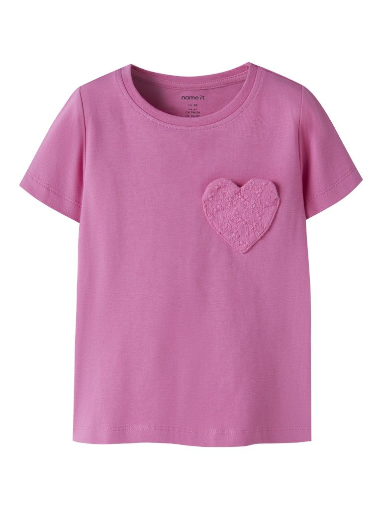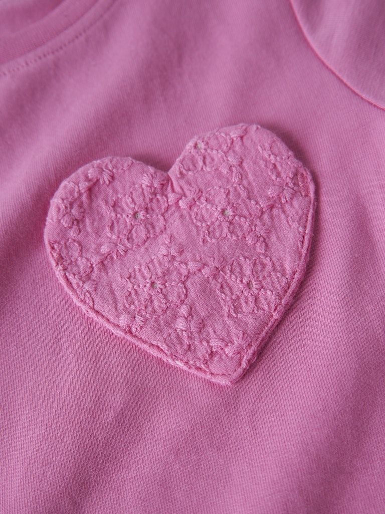 Aktualisieren Sie die Garderobe Ihres Kindes mit diesem süssen T-Shirt, das Spass und Komfort perfekt vereint. Das leichte Jersey-Material mit weicher Oberfläche sorgt für ein angenehmes Tragegefühl und viel Bewegungsfreiheit - ideal für Alltag, Schule oder besondere Anlässe. Die herzförmige Brusttasche und feine gewebte Details machen das T-Shirt zu einem echten Blickfang.