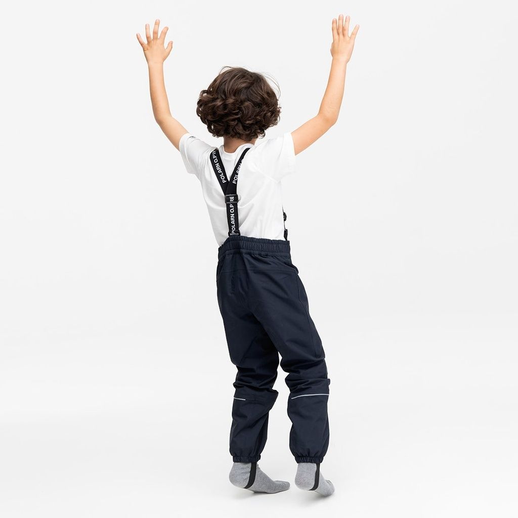 Die Shellhose aus wind- und wasserdichtem Material ist bequem und praktisch. Sie besteht aus strapazierfähigem, atmungsaktivem Material, das überschüssige Wärme und Feuchtigkeit ableitet. Dank vollständig versiegelter Nähte ist das Kleidungsstück wasserdicht. Die abnehmbaren Hosenträger lassen sich ebenso wie der Bund verstellen. Die vorgeformten Knie und elastischen Beinabschlüsse sorgen für hohe Bewegungsfreiheit und eine tolle Passform. Der Hosenschlitz wird mit Druckknöpfen und Reissverschluss geschlossen. Die austauschbaren Fussschlaufen sorgen dafür, dass die Hose nicht verrutscht. Das Kleidungsstück wird in seiner längsten Position völlig unangepasst geliefertt.