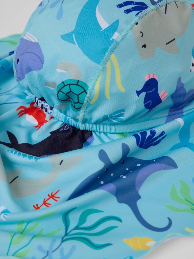 Mit dieser UV-Kappe von Polarn O. Pyret ist Ihr Kind optimal vor der Sonne geschützt. Das weiche, elastische Material aus recyceltem Polyester sorgt für ein angenehmes Tragegefühl und trocknet besonders schnell - ideal für Strand, Pool und warme Sommertage.