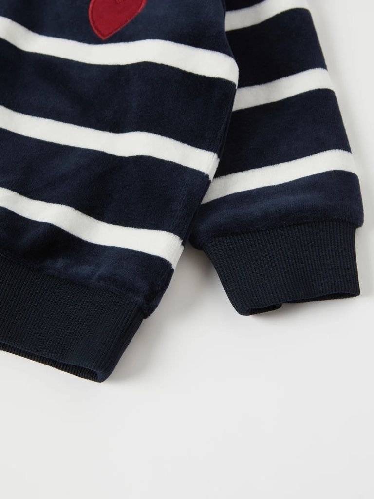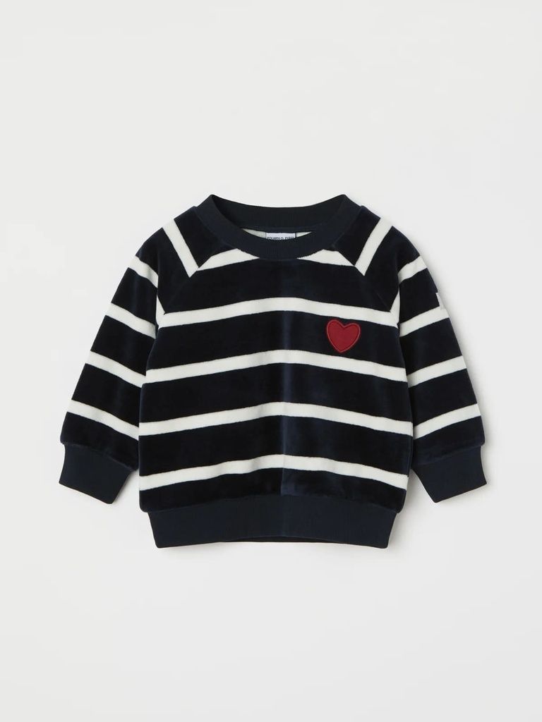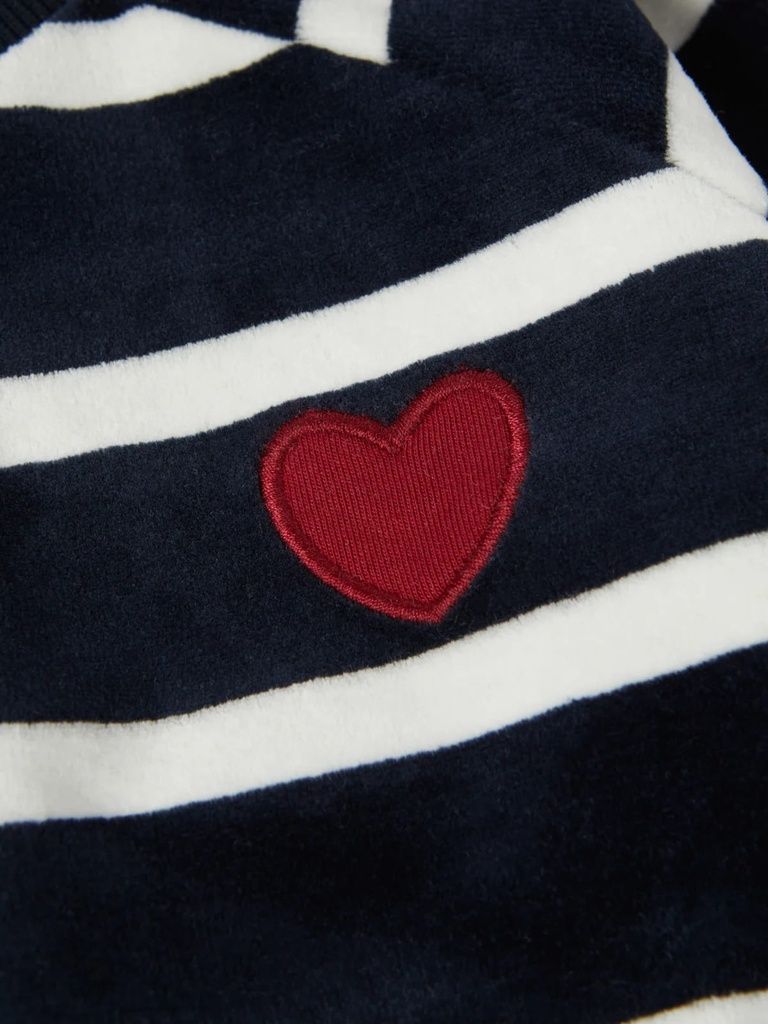 Superweiches und richtig kuscheliges Shirt aus Velours für Babys. Das Shirt aus Bio-Baumwolle und recyceltem Polyester hat ein weiches aufgesticktes Herz auf dem Vorderteil.