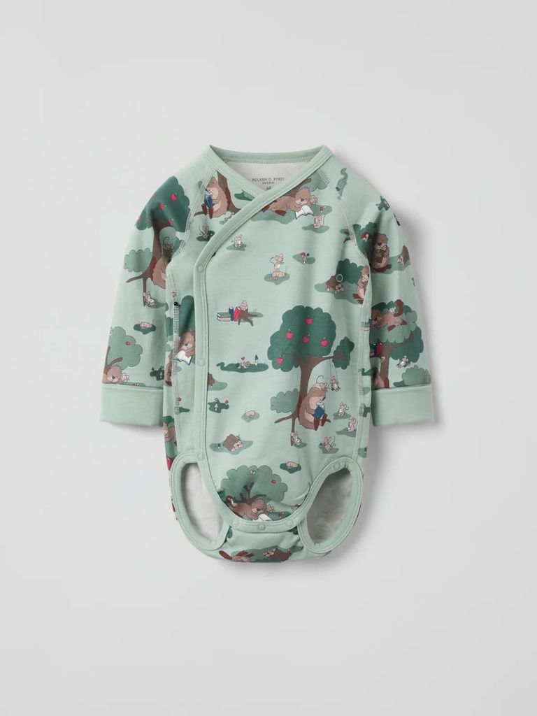 Dieser verlängerbare Wickelbody aus 100 % Bio-Baumwolle ist perfekt für wachsende Babys. Eine zusätzliche Reihe an Druckknöpfen im Schritt und umschlagbare Ärmelbündchen sorgen dafür, dass der Body länger passt - bequem, nachhaltig und praktisch zugleich.