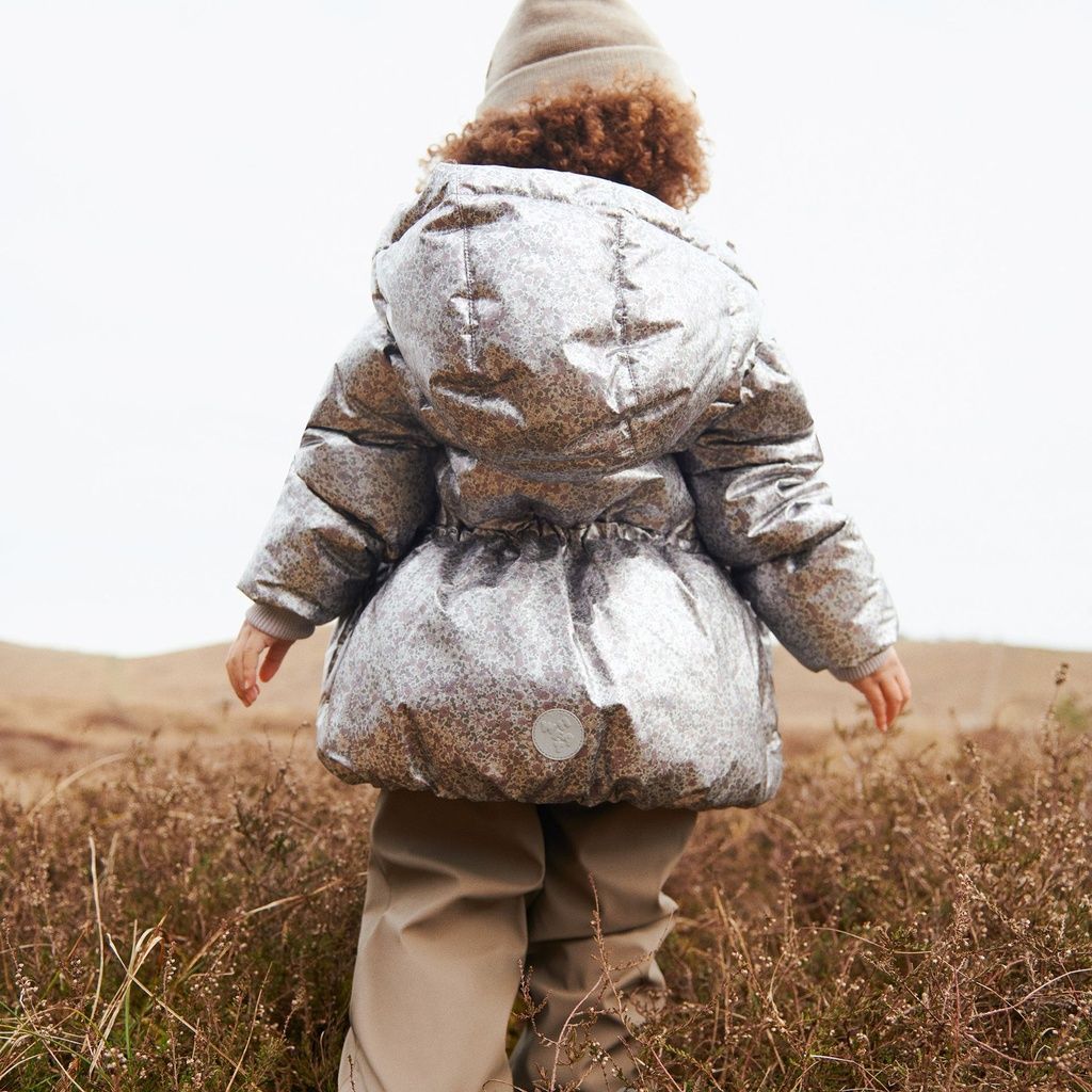 Die Wheat Steppjacke im Metallic-Look verbindet Funktionalität, Nachhaltigkeit und trendiges Design - perfekt für aktive Kinder, die auch an kalten Tagen draussen glänzen möchten.