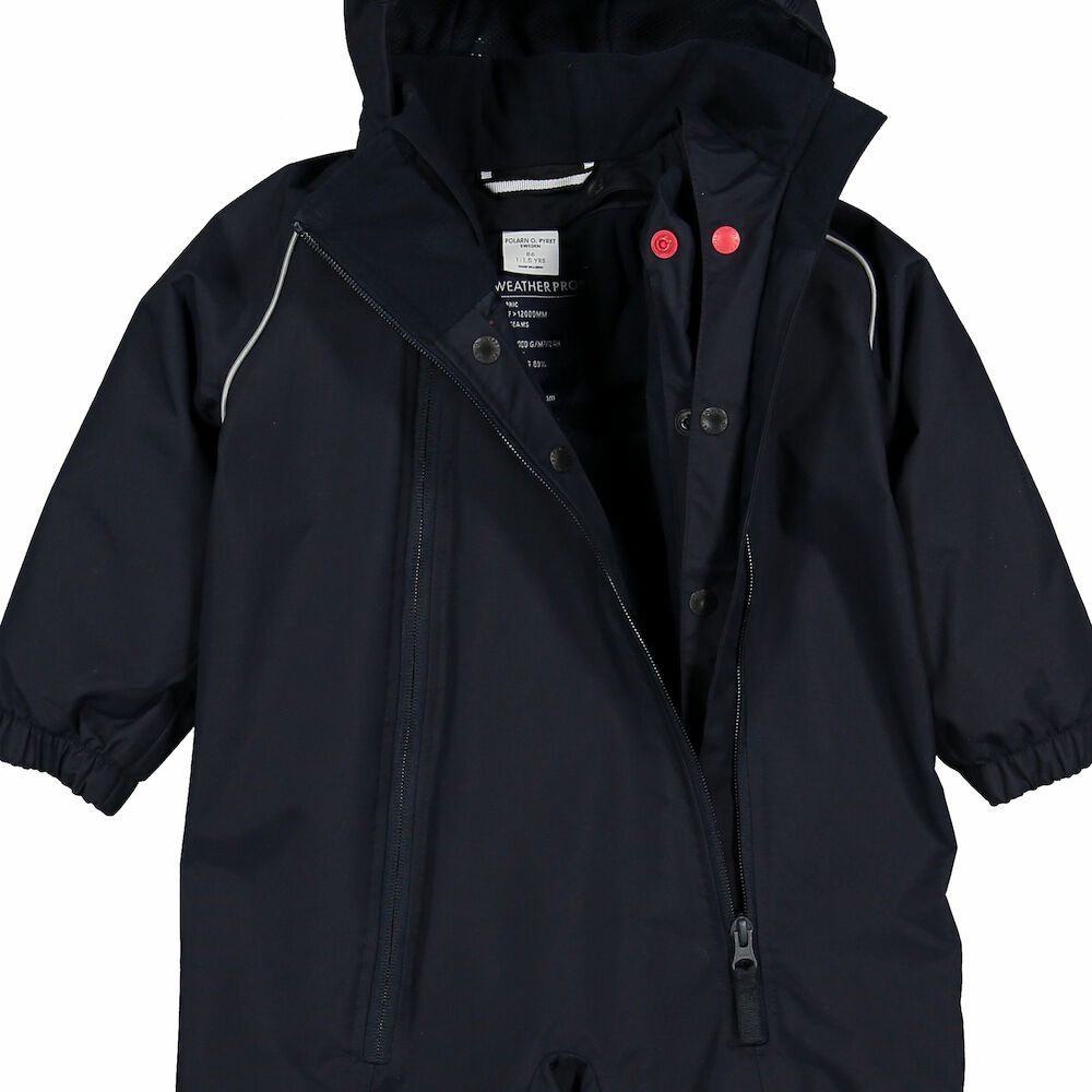 Schnee und Kälte können diesem Shelloverall mit Fleecefutter für Babys nichts anhaben. Der wind- und wasserdichte Overall wird aus strapazierfähigem Material gefertigt. Bei diesem Modell lässt sich das warme Fleecefutter herausnehmen, sodass sich der Overall auch für Frühjahr und Herbst sowie milde Wintertage bestens eignet. Mit Hilfe eines kontrastfarbigen Knopfes an der Innenseite lässt sich das Fleecefutter einfach mit dem Overall verbinden. Die regulierbare Kapuze ist zum Abnehmen mit Druckknöpfen versehen. Kragen und Ärmelabschlüsse sind mit weichem Fleece gefüttert. Die hübschen Reissverschlüsse in Akzentfarben sind innen mit einer Windschutzleiste versehen, die kalte Luft fernhält. Elastische Ärmel- und Beinabschlüsse sowie eine Dehnpartie in der Taille gewährleisten eine gute Passform. und die austauschbaren elastischen Fussschlaufen sorgen dafür, dass nichts verrutscht. 3. Schicht: Outdoor-Bekleidung, die warm hält und bei jedem Wetter Schutz bietet. Weitere Merkmale des Overalls: Futter aus recyceltem Polyester. Kleidungsstücke, die mit PO.P WeatherPRO® gekennzeichnet sind, erfüllen sämtliche Anforderungen, die wir an funktionelle Outdoor-Bekleidung stellen, insbesondere Strapazierfähigkeit, Wasserdichtigkeit, Atmungsaktivität oder Kindersicherheit. Bei Outdoor-Bekleidung mit dem Gütesiegel PO.P WeatherPRO® garantieren wir zu jeder Zeit.