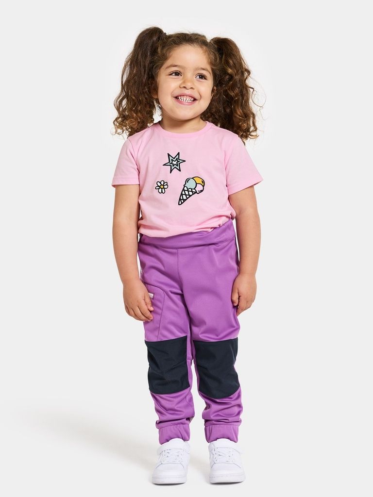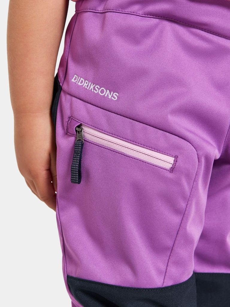 Lövet ist eine weiche, wasserabweisende und winddichte Softshell-Hose für das Spielen im Freien. Leichtes und flexibles Tragegefühl mit normaler Passform.