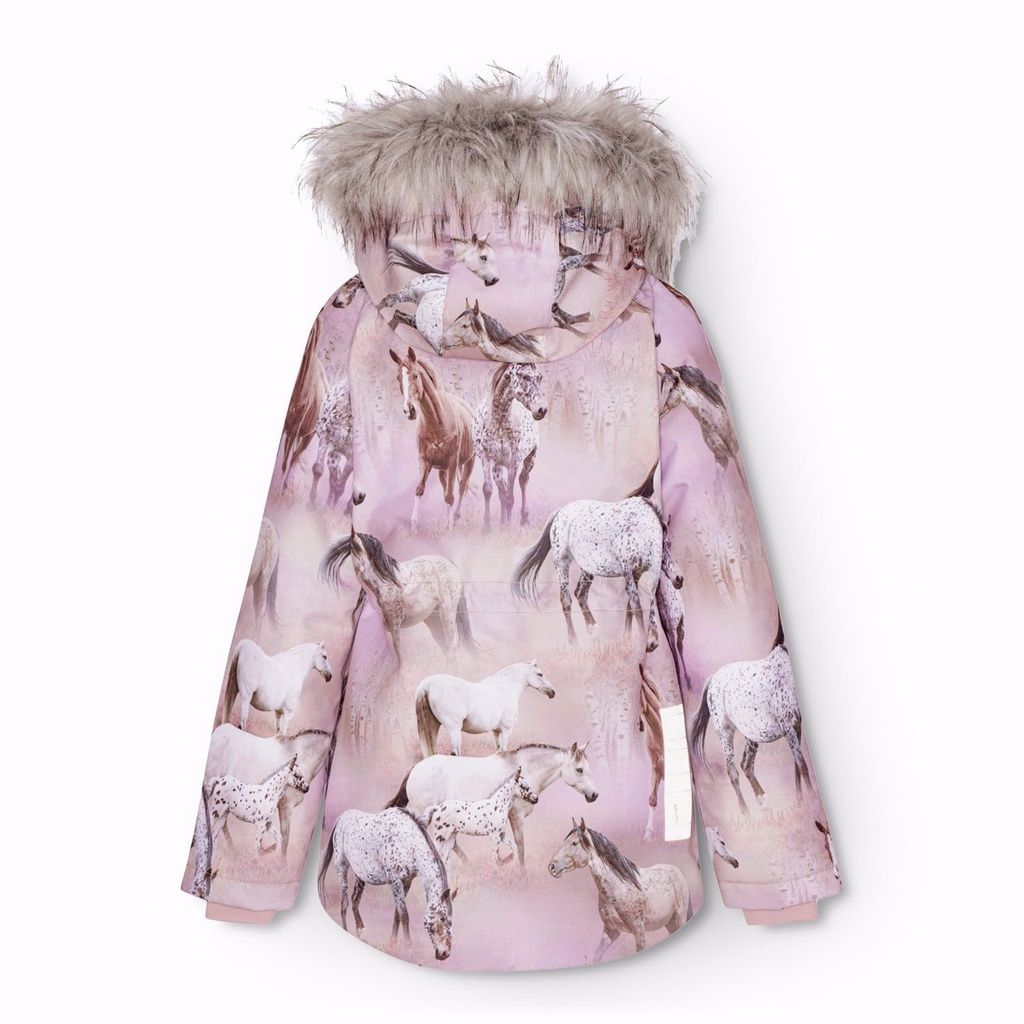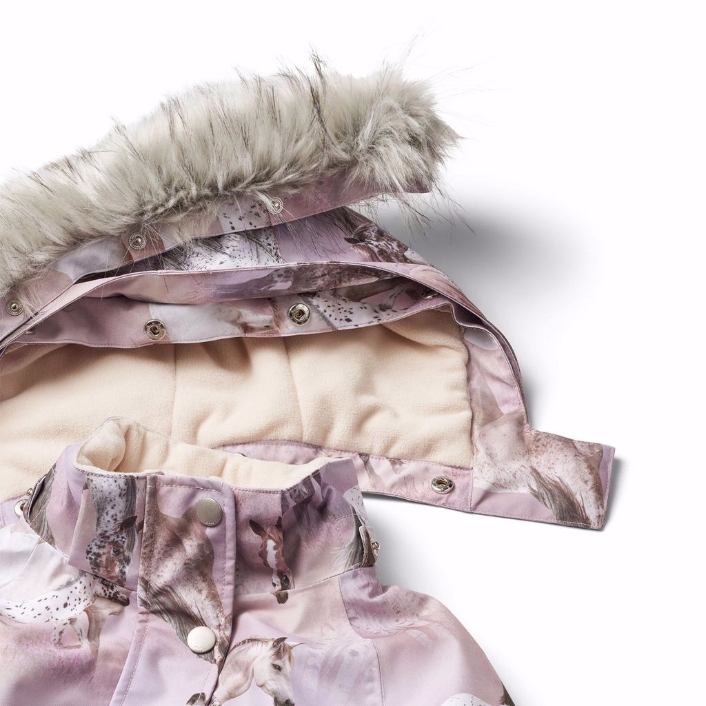 Hintergrund in Pink- und Lilatönen. Die Jacke hat eine abnehmbare gefütterte