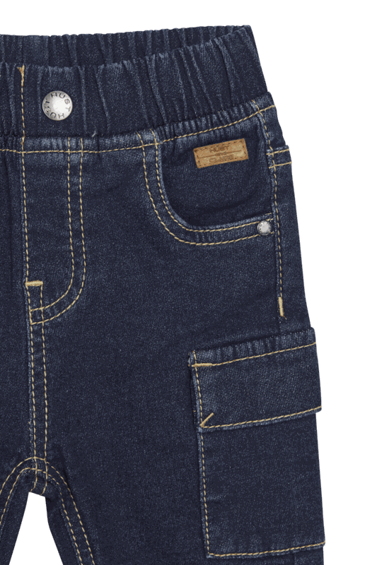 Jeanshose aus elastischem Denim mit klassischen Jeansdetails. Dieses Modell hat Taschen vorne und an den Hosenbeinen.