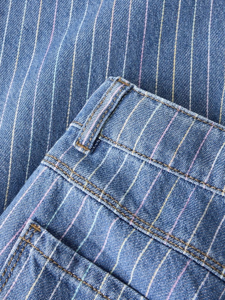 Praktische Details wie Taschen vorne, Gesässtaschen und eine Münztasche bieten Platz für kleine Schätze. Dank verstellbarem Bund lässt sich die Passform individuell anpassen. Der Druckknopfverschluss mit halbem Zierhosenschlitz rundet das Design funktional ab.
